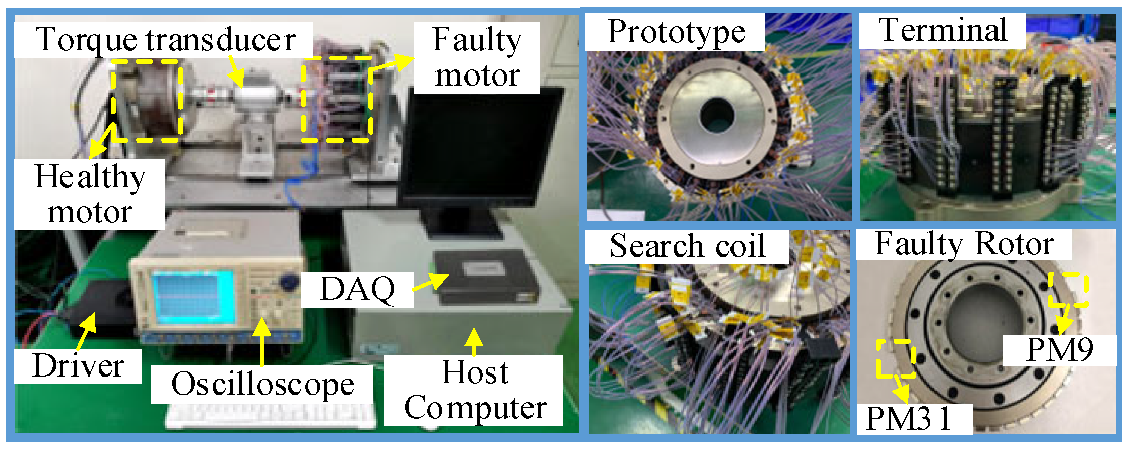 - Rafaq, M.S.; Lee, H.; Park, Y.; Lee, S.B.; Zapico, M.O.; Fernandez, D.; Diaz-Reigosa, D.; Briz, F. Airgap search coil based identification of PM synchronous motor defects. IEEE Trans. Ind. Electron. 2022, 69, 6551–6560. [Google Scholar] [CrossRef]