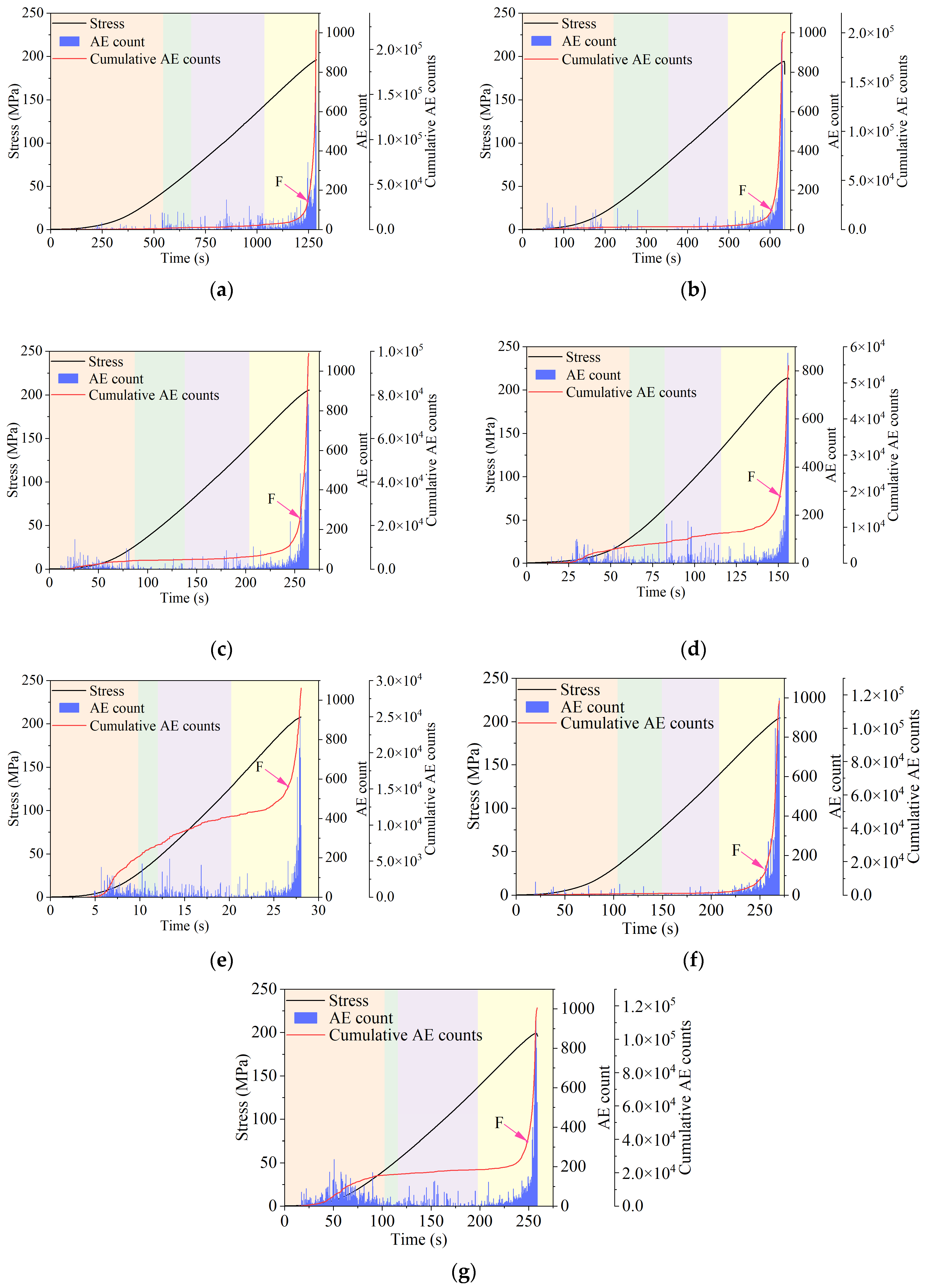 - Shan, P.F.; Gao, J.M.; Lai, X.P.; Sun, H.Q.; Yang, P.; Dai, J.J. Study on acoustic emission rate response of coal samples considering initial damage difference. J. Min. Saf. Eng. 2023, 40, 798–808. [Google Scholar]