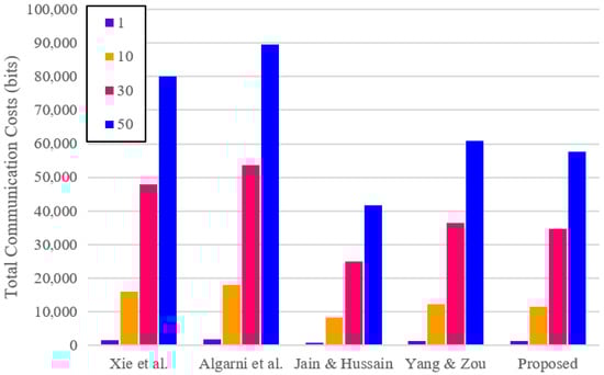 Total communication cost of the proposed protocol and the related protocols.