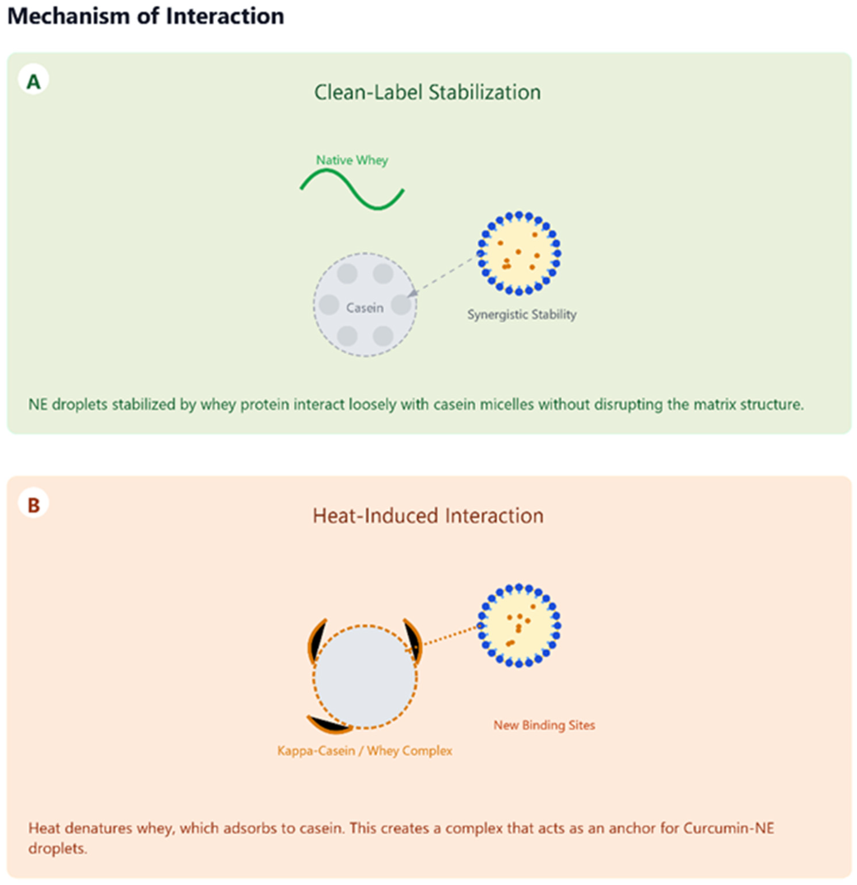 | Fluid Milk (WPC-Stabilized NE) | Stable for pasteurization (63 °C/30 min) and sterilization (95 °C/10 min). Stable pH 3–7 and ionic strength (0.1–1 M NaCl). Stable 30 days @ 4 °C. | _____ | Stabilizer choice: Texturized WPC provides robust steric stabilization against processing stresses. |