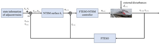 In this section, we will investigate the FTESO-NTSM control algorithm for each train in the VCTS by considering nonlinear external disturbances. First, we formulate the control objective cooperative operation model which accounts for tracking distance and velocity. Then, we adopt the NTSM control method as the baseline to avoid singularity caused by the classical terminal sliding mode (TSM) algorithm. Finally, an extended state observer based on tracking error is designed to estimate the external unknown disturbances. The goal of the proposed controller is to converge the tracking distance error and speed error to a balanced surface in finite time.