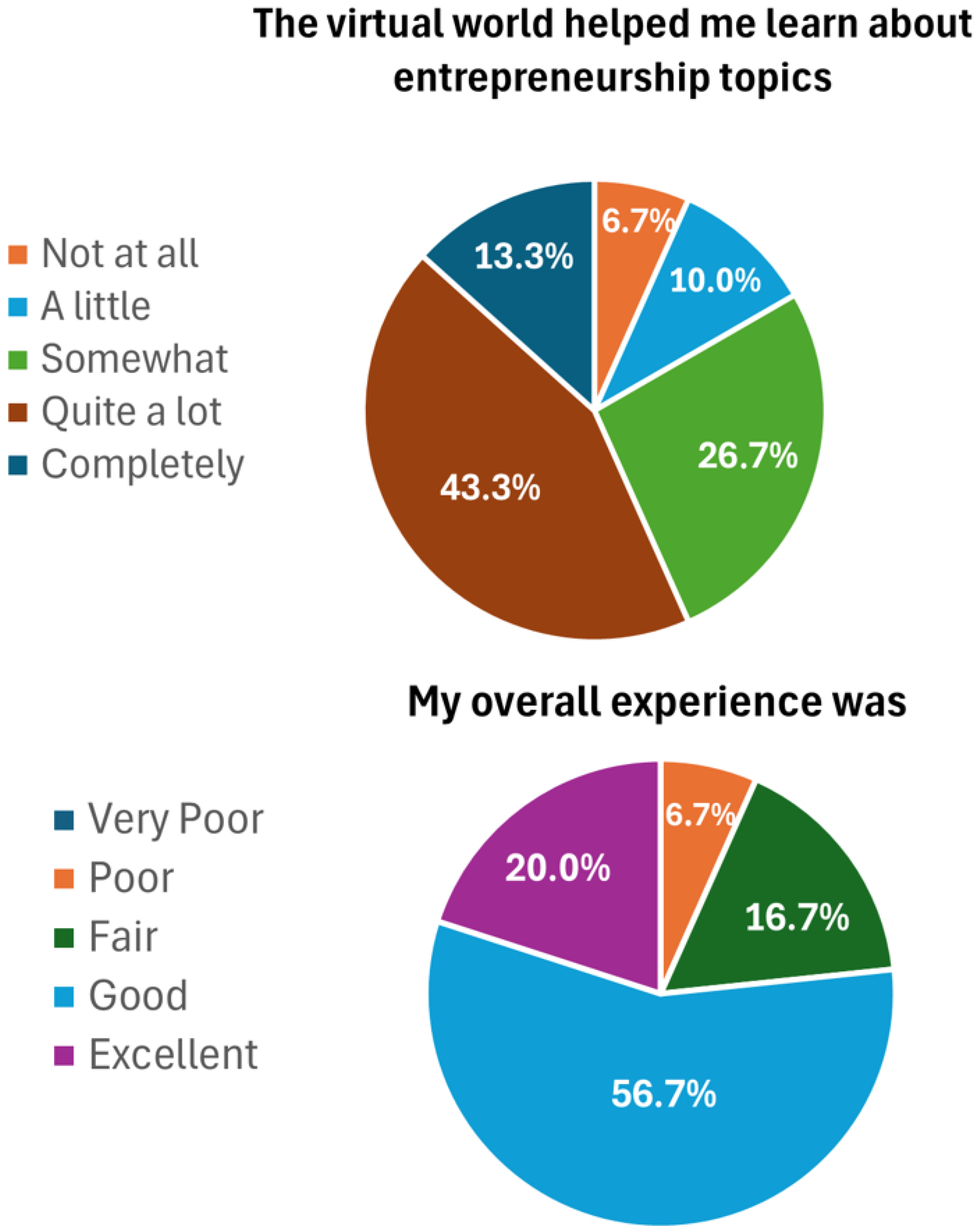 - de Mattos, D.P.; Popovici, D. VR4STEM—A 3D Virtual World for Assisting Young People to Gain Entrepreneurship Skill in the STEM and ICT Domains. In Proceedings of the 12th International Technology, Education and Development Conference (INTED 2018), Valencia, Spain, 5–7 March 2018; pp. 9322–9330. [Google Scholar]