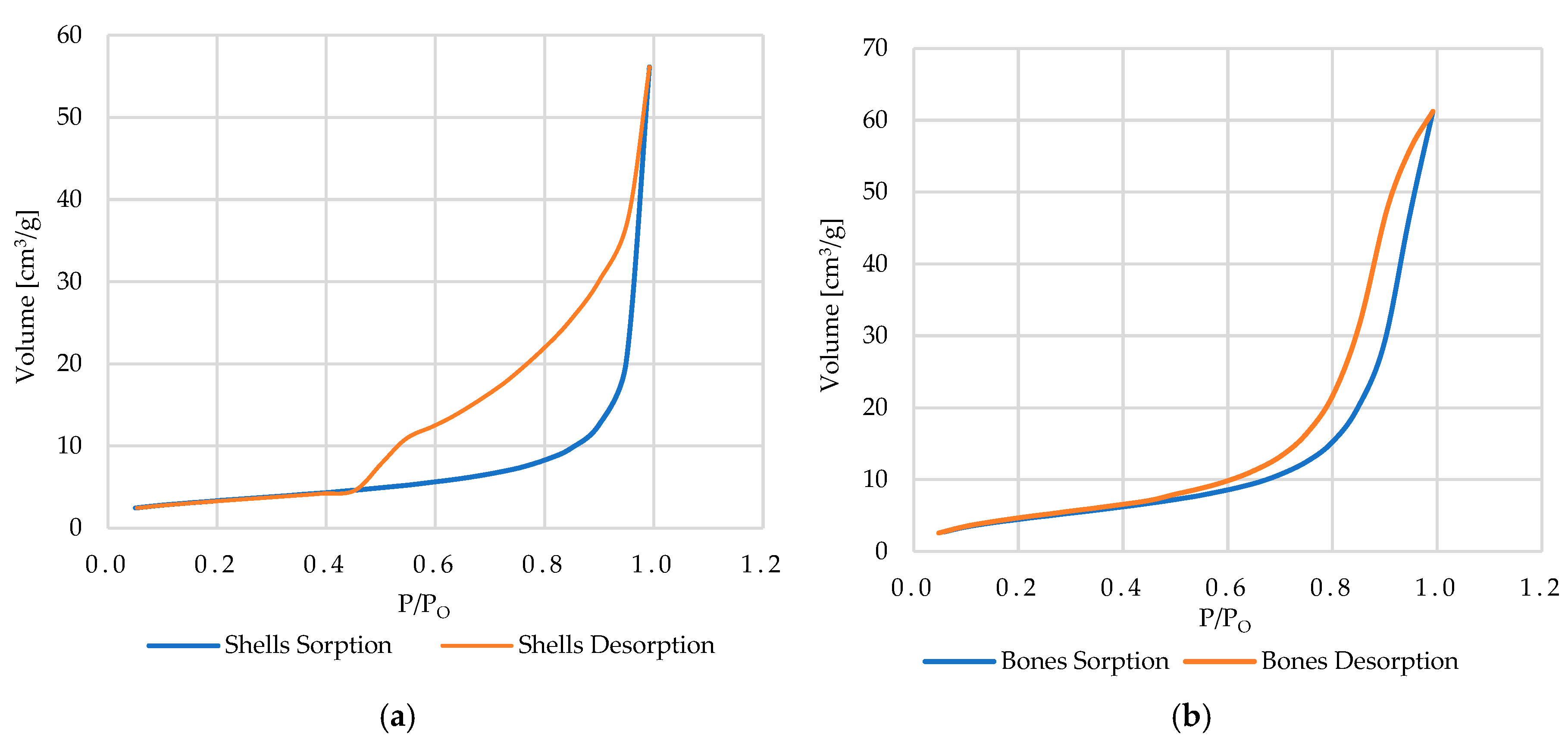 - Rashed, M.N.; Gad, A.A.E.; Fathy, N.M. Efficiency of Chemically Activated Raw and Calcined Waste Fish Bone for Adsorption of Cd (II) and Pb (II) from Polluted Water. Biomass Convers. Biorefinery 2024, 14, 31703–31720. [Google Scholar] [CrossRef]