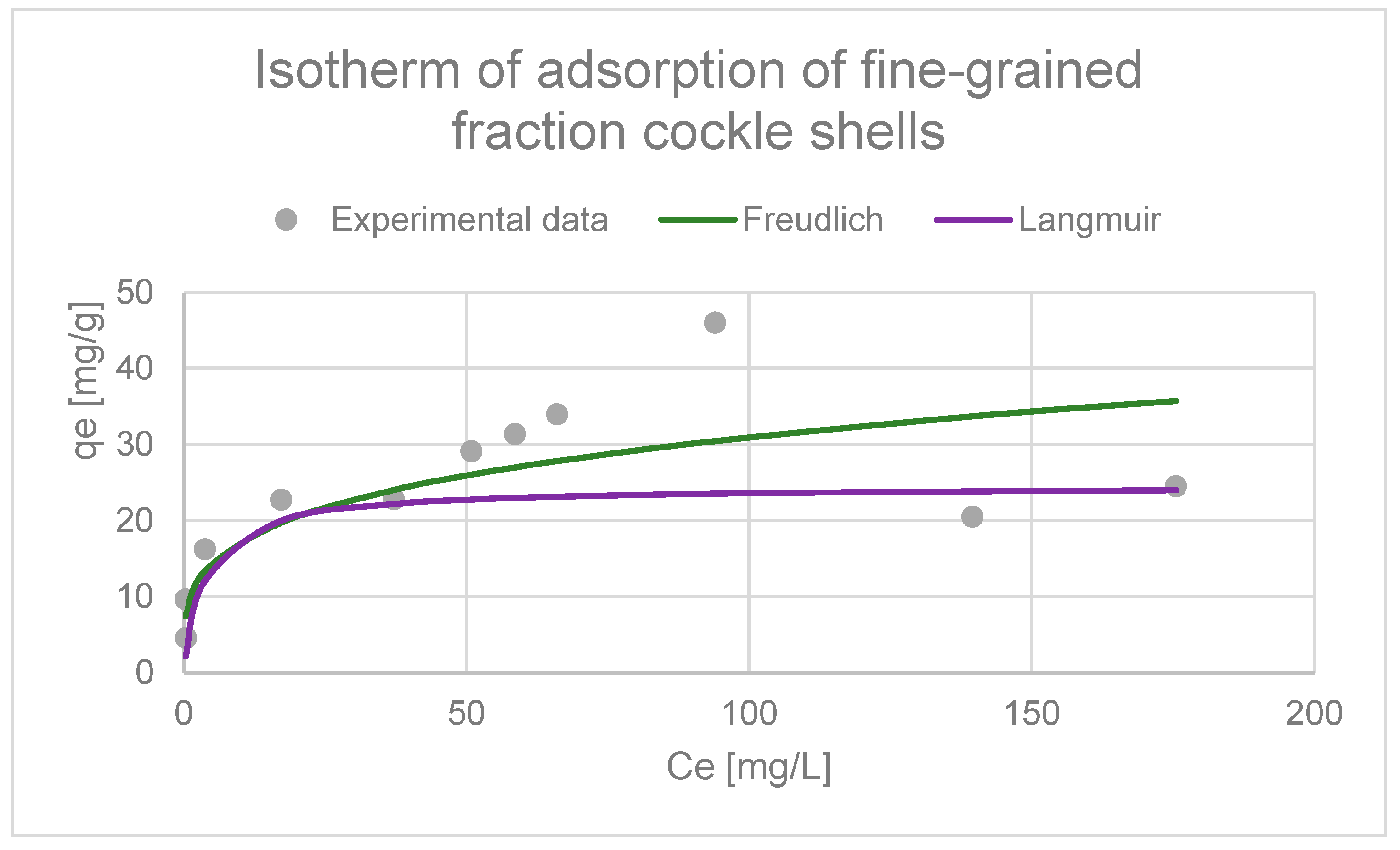 - Khayyun, T.S.; Mseer, A.H. Comparison of the Experimental Results with the Langmuir and Freundlich Models for Copper Removal on Limestone Adsorbent. Appl. Water Sci. 2019, 9, 170. [Google Scholar] [CrossRef]