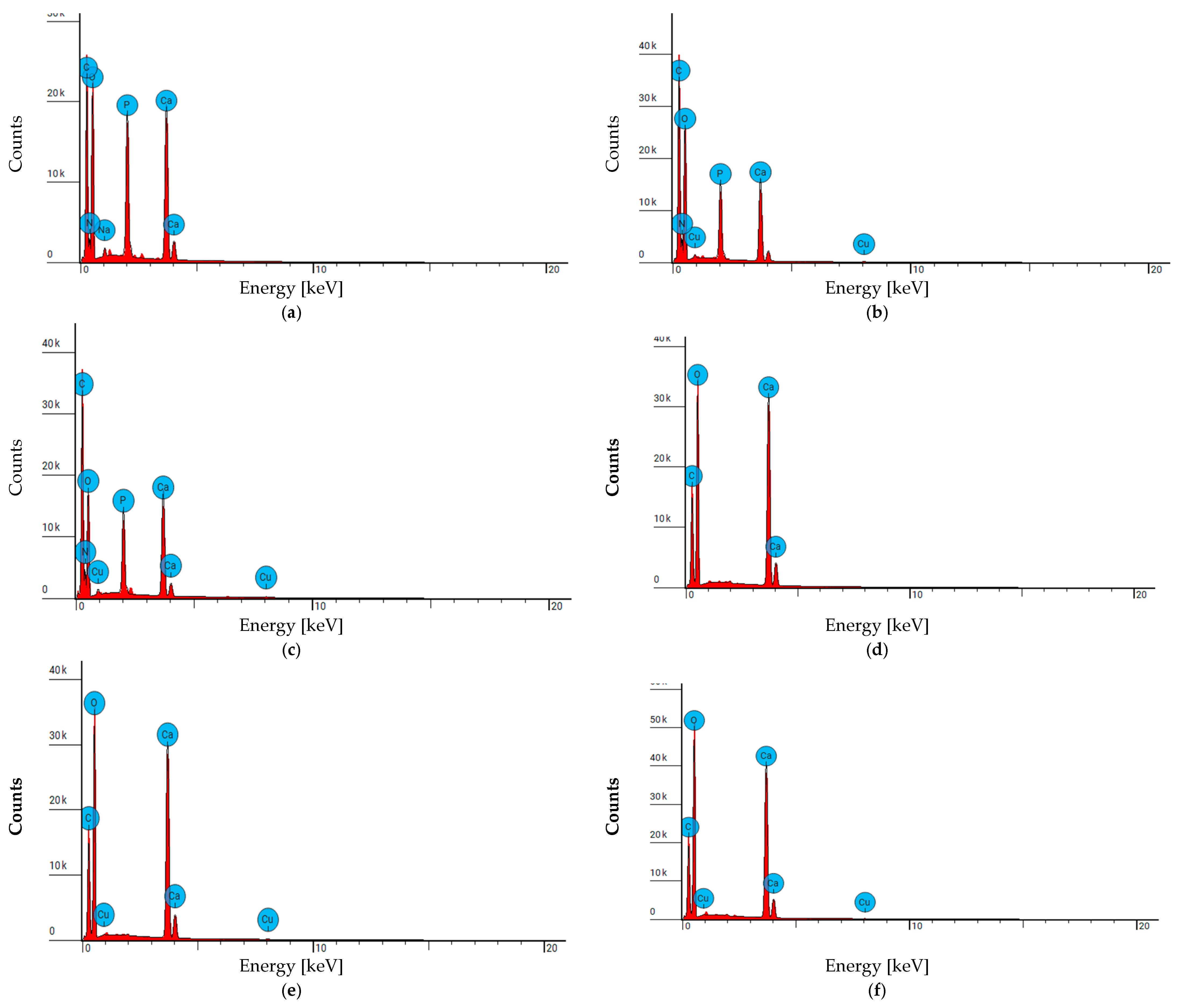 - Cișmașu, M.; Modrogan, C.; Orbuleț, O.D.; Bosomoiu, M.; Răileanu, M.; Dăncilă, A.M. Bone Meal as a Sustainable Amendment for Zinc Retention in Polluted Soils: Adsorption Mechanisms, Characterization, and Germination Response. Sustainability 2025, 17, 8027. [Google Scholar] [CrossRef]