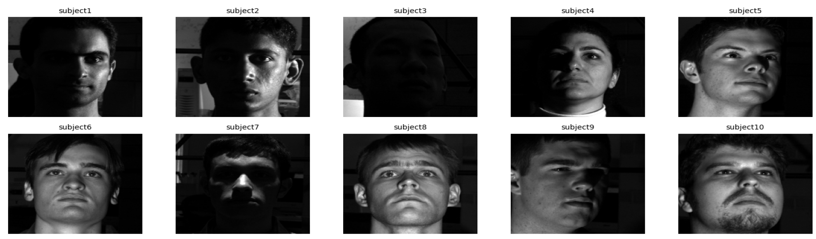 The experiments were conducted using the Extended Yale B (cropped) dataset, which includes 16,128 grayscale facial images of 28 subjects, captured under 64 illumination conditions and 9 pose variations. Each face image was automatically cropped to 192 × 168 pixels using a face detection algorithm, ensuring that only relevant facial regions were preserved.