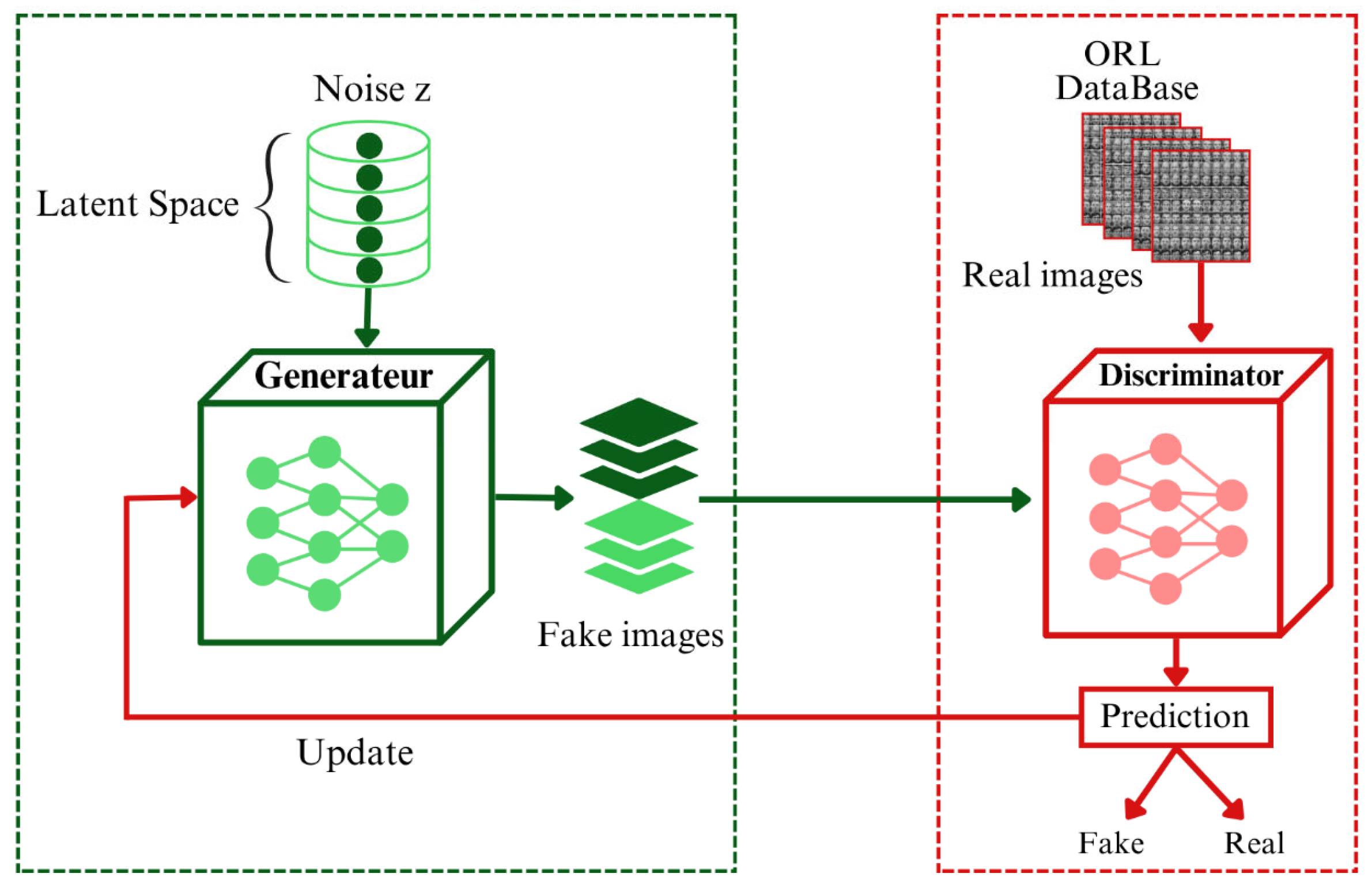 To address dataset limitations and enhance model robustness, a Generative Adversarial Network (GAN) was trained to generate synthetic facial images representing variations difficult to capture manually. The architecture is shown in