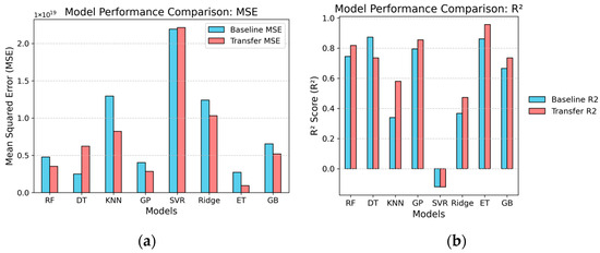 Additionally, the Extra Trees model excelled further, achieving an impressive MSE = 8.47 × 1018 and an R2 = 0.956, signifying its strong adaptability in managing diverse data scenarios through transfer learning. Other models, such as Gaussian process (MSE = 2.84 × 1018, R2 = 0.854) and gradient boosting (MSE = 5.19 × 1018, R2 = 0.735), also displayed marked improvements in predictive accuracy.