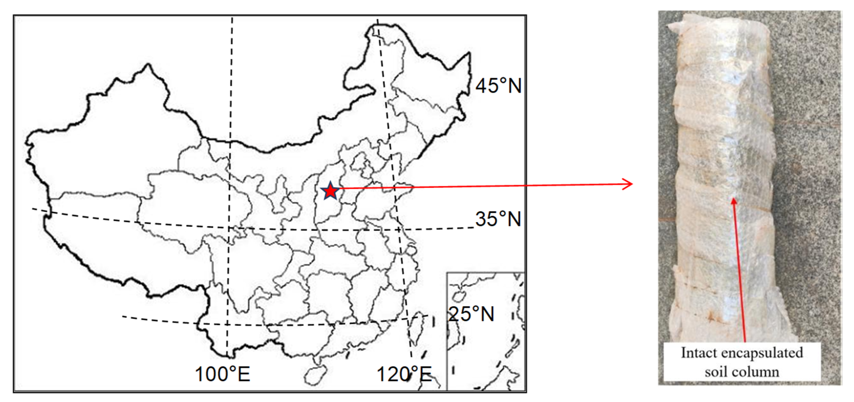 - Tan, Y.; Dai, F.C.; Zhao, Z.Q.; Zhou, J.; Cheng, W. Analysis of soil–water characteristic curve and microstructure of undisturbed loess. Appl. Sci. 2024, 14, 3329. [Google Scholar] [CrossRef]