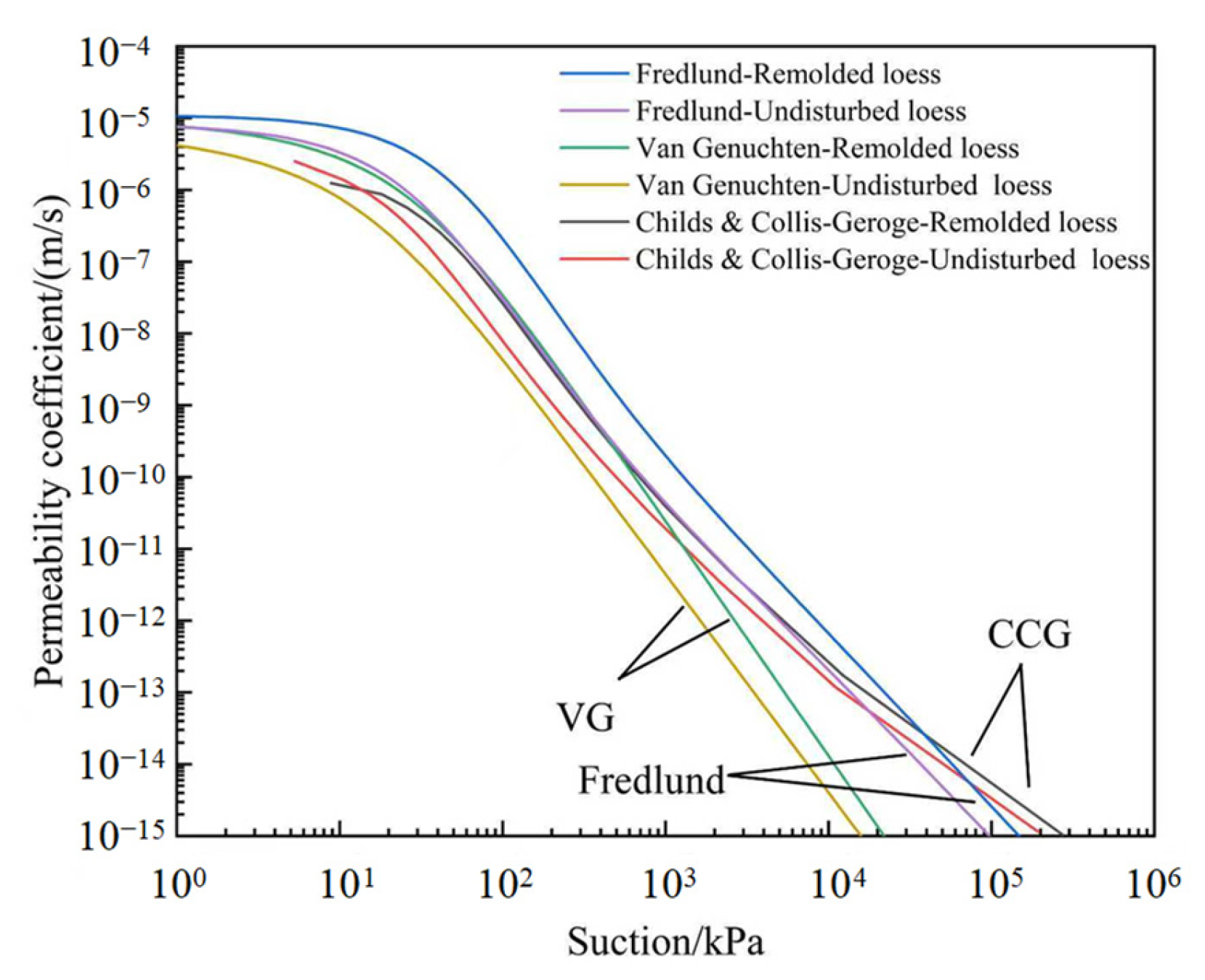 - The Childs and Collis-George, Van Genuchten, and Fredlund permeability models produced varying predictions for permeability but demonstrated consistent trends that aligned with conventional HCC behavior.