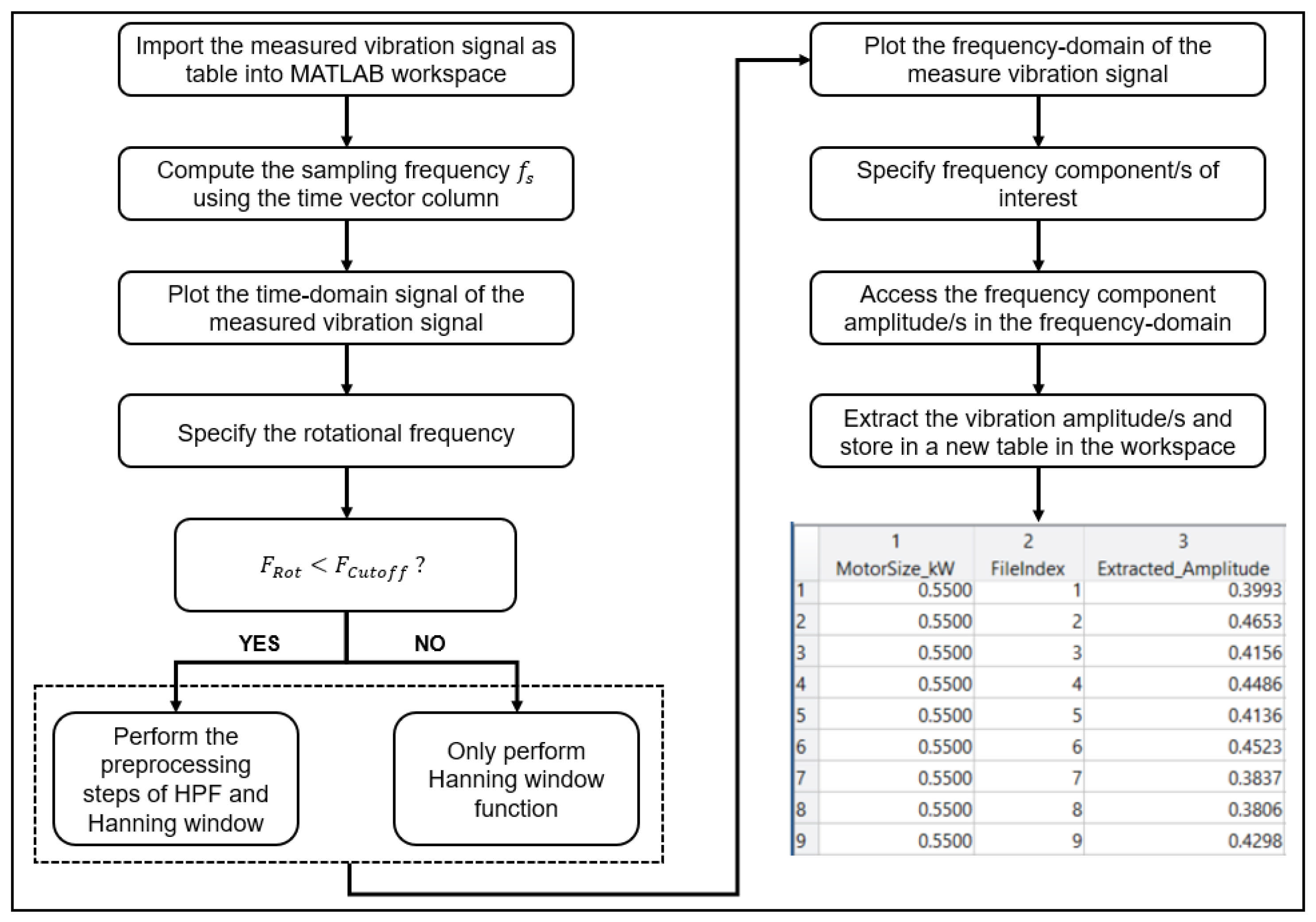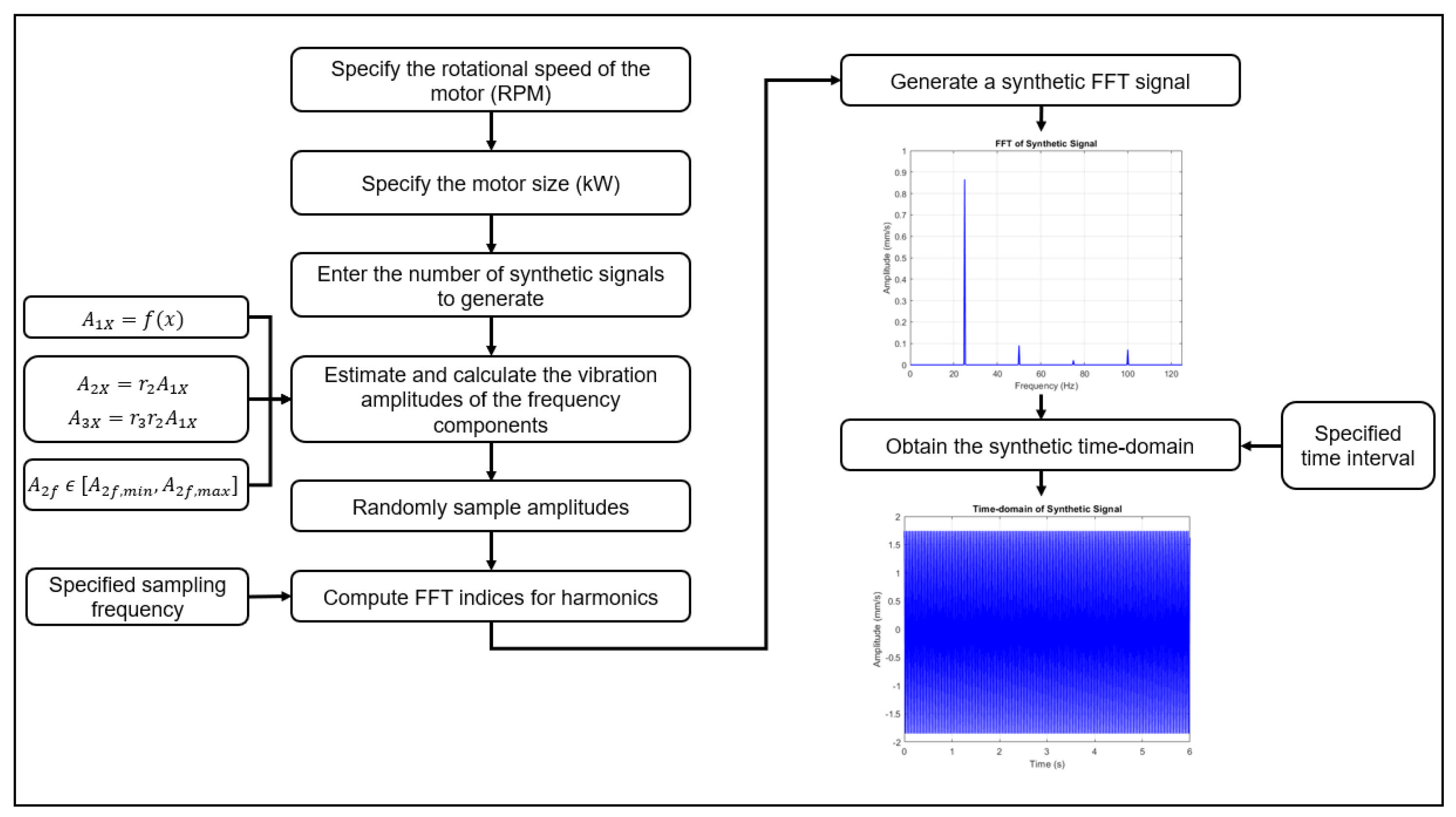 - Step 1: Input specification: The motor rotational speed (RPM) and power rating (kW) are specified as input parameters, corresponding to the target motor for which baseline signals are required.