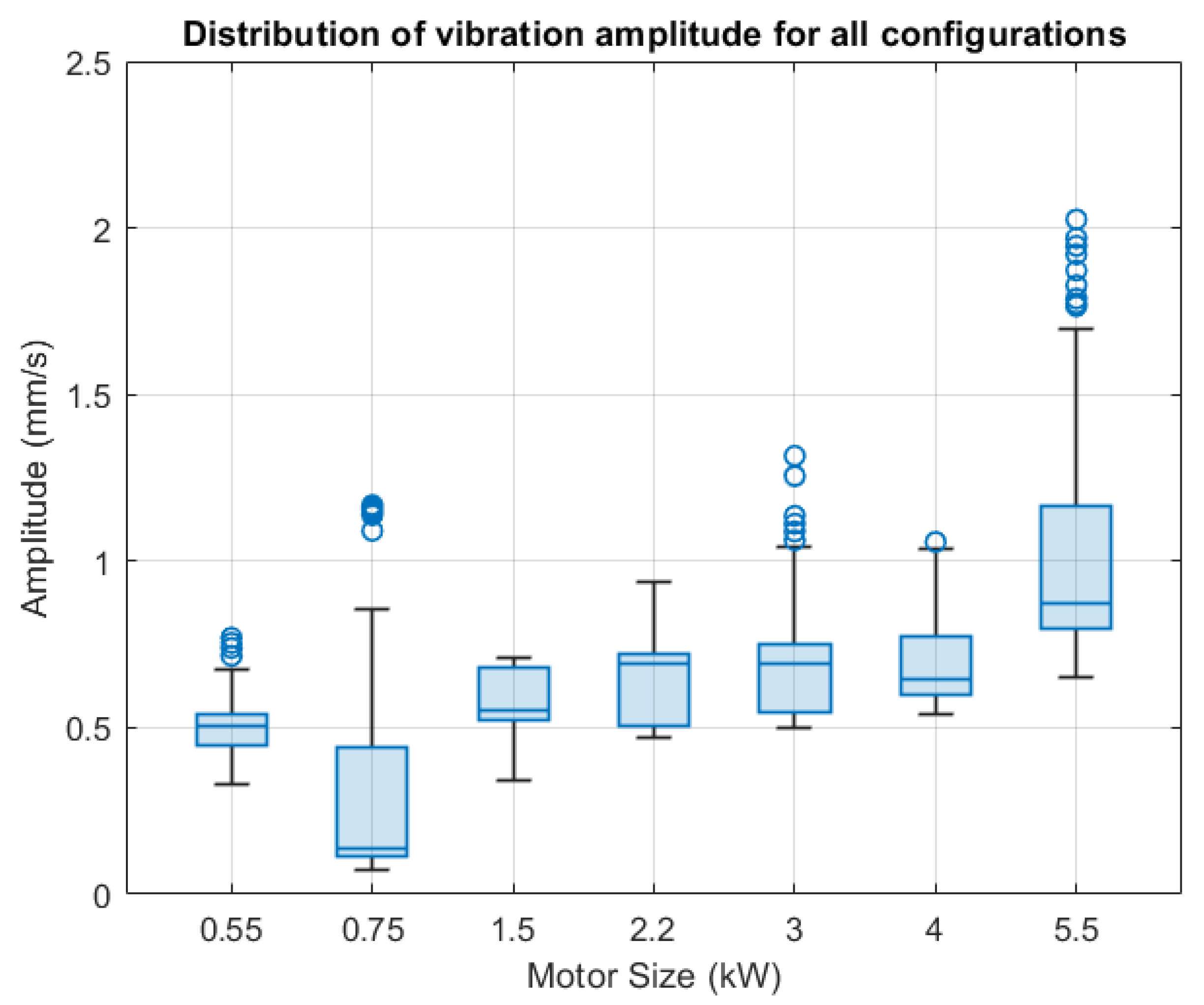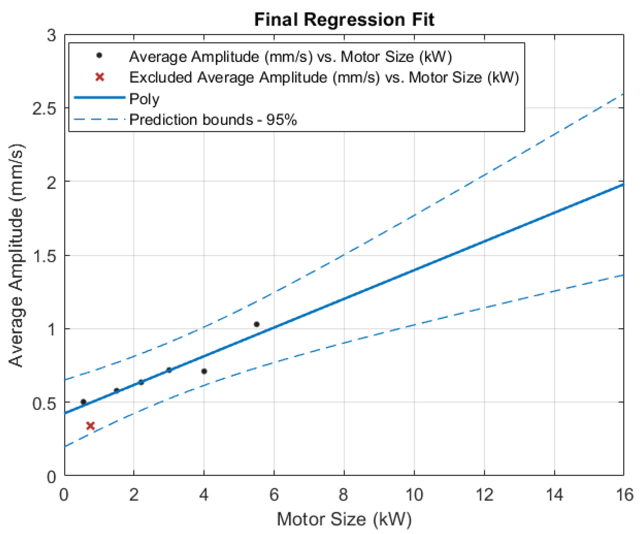 - An empirical correlation between motor power rating and healthy vibration amplitude at rotational frequency for Class I induction motors was developed, expressed as , based on 2660 measurements across 98 configurations, establishing predictive relationships absent in existing standards [3];