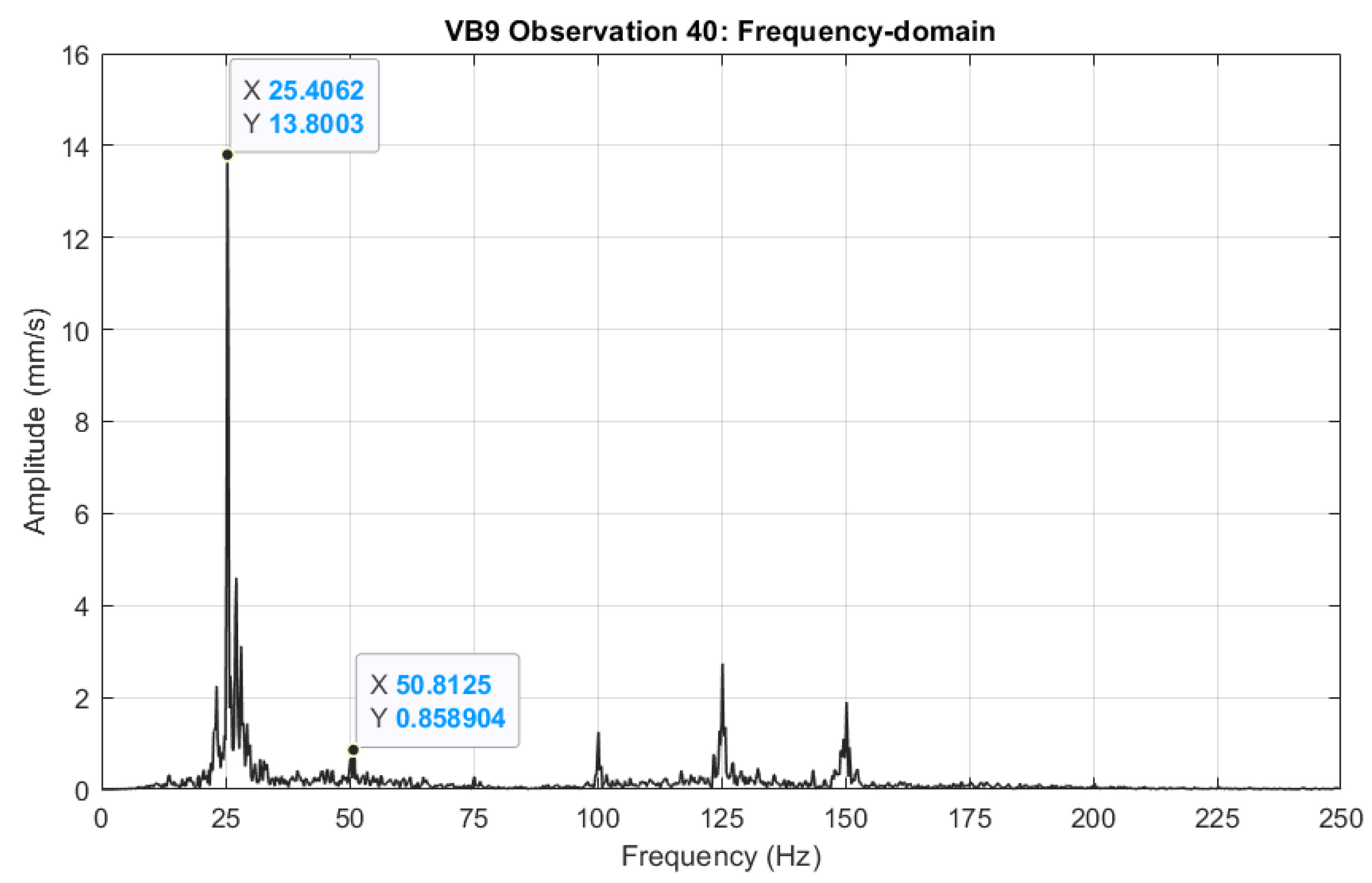 - Supply frequency: The frequency of the electrical supply (50 Hz) and its harmonic will always be present in the vibration spectrum of a healthy induction motor, irrespective of the type of loading and coupling. The reason why these components will be present in the healthy spectrum is because of the alternating magnetic forces in the stator field and the magnetic pull forces in the motor.