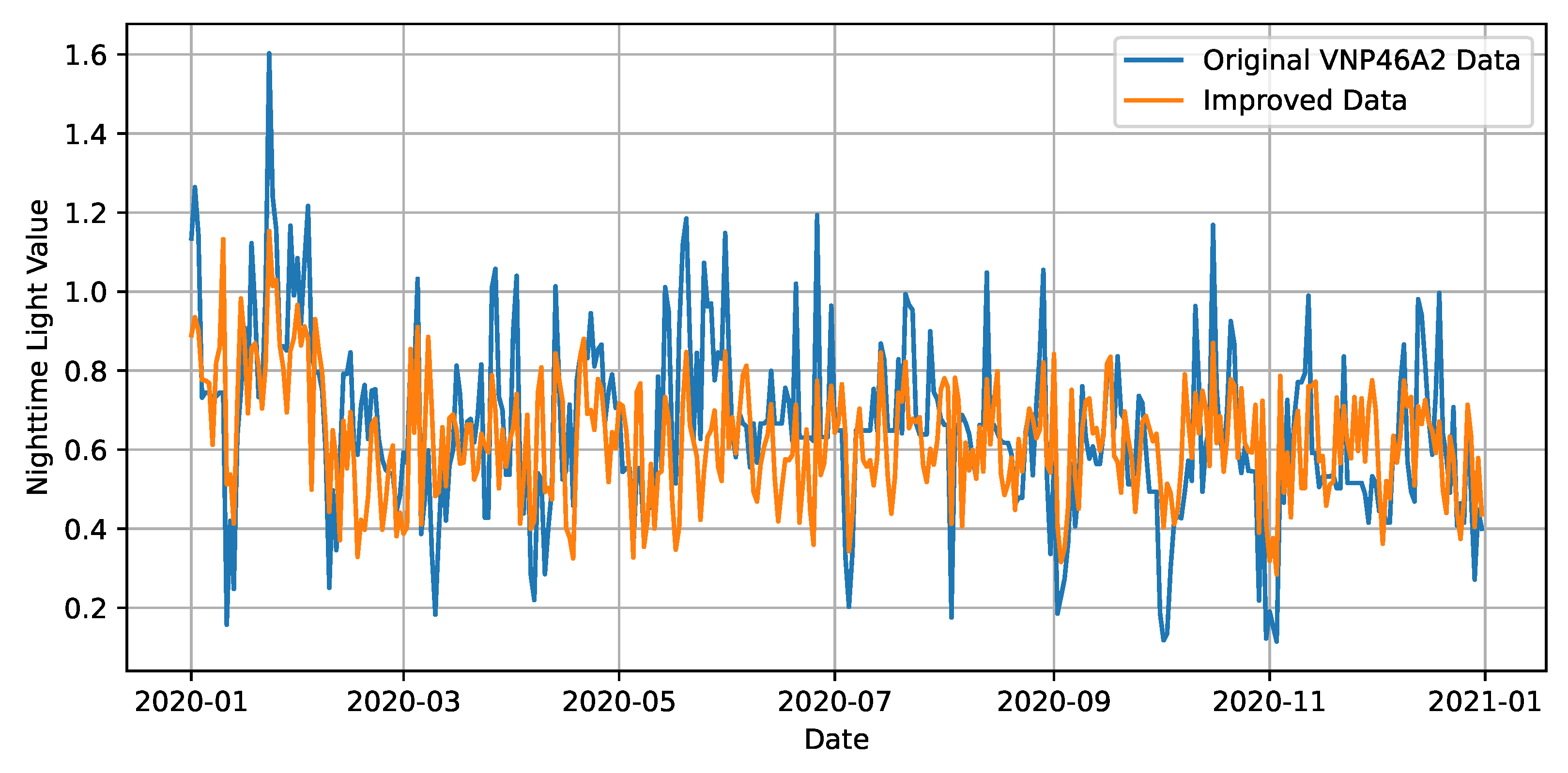 3.1. The Improved Daily NTL Data