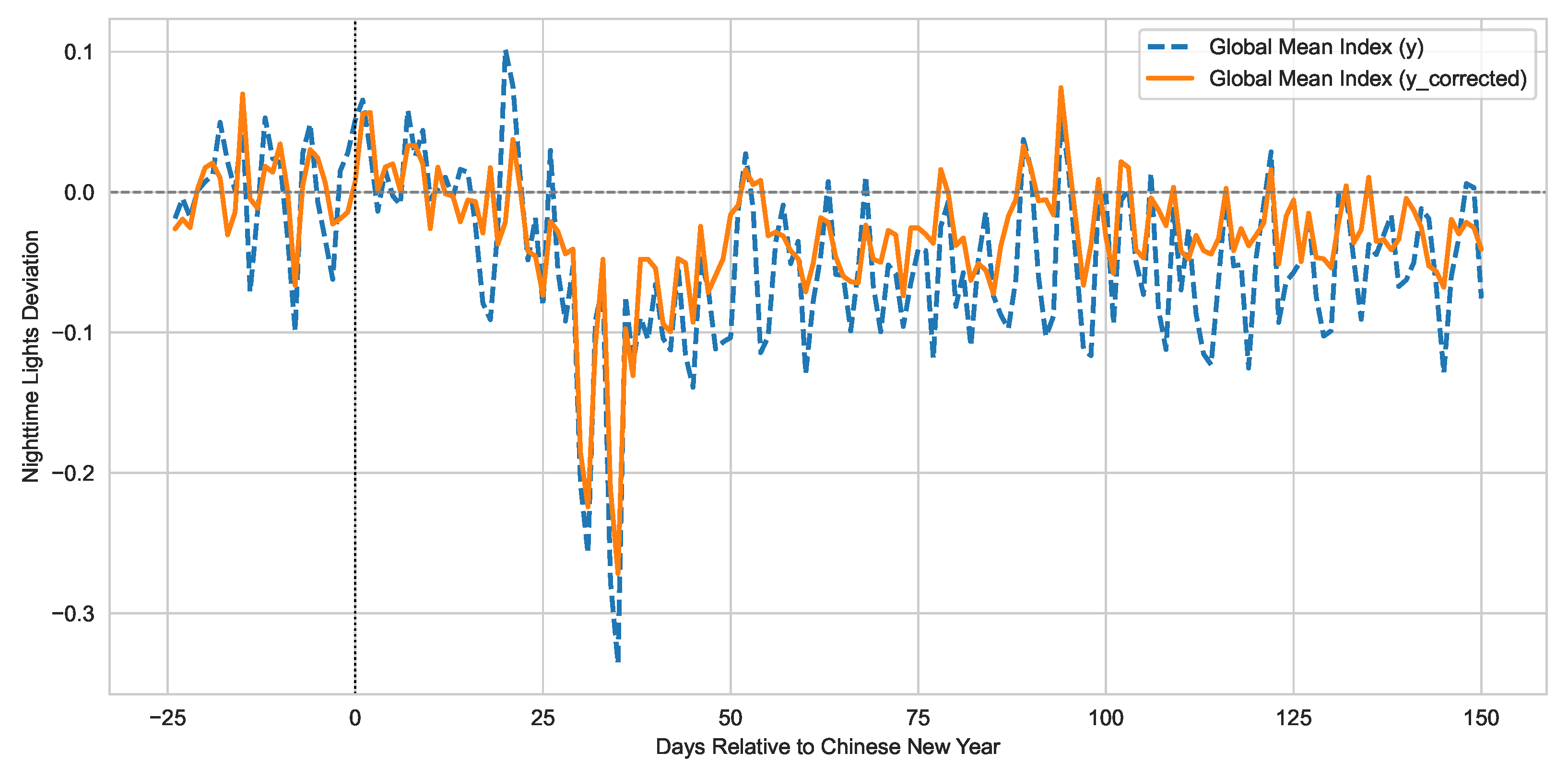 - First, the economic outcome of interest can be proxied by local NTL intensity. The daily NTL observations across multiple spatial units forms a panel dataset that cross-sectional units correspond to geographically localized economic activities.