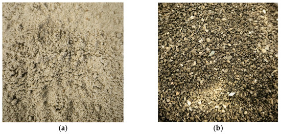 The gradation curves of the aggregates were determined in accordance with the EN 933-1 standard [54] and are shown in Figure 2.
