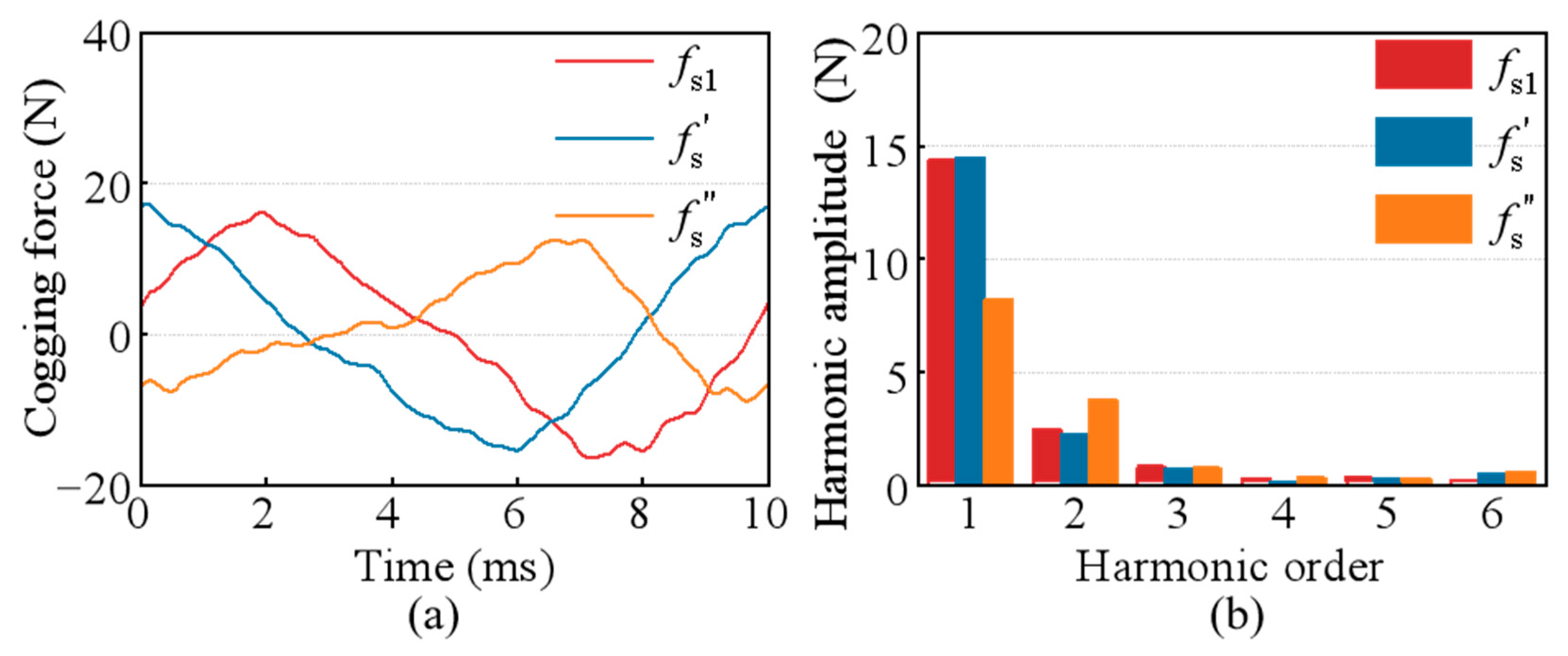 - Hu, H.; Zhao, J.; Liu, X.; Guo, Y.; Zhu, J. No-Load Magnetic Field and Cogging Force Calculation in Linear Permanent-Magnet Synchronous Machines with Semiclosed Slots. IEEE Trans. Ind. Electron. 2017, 64, 5564–5575. [Google Scholar] [CrossRef]