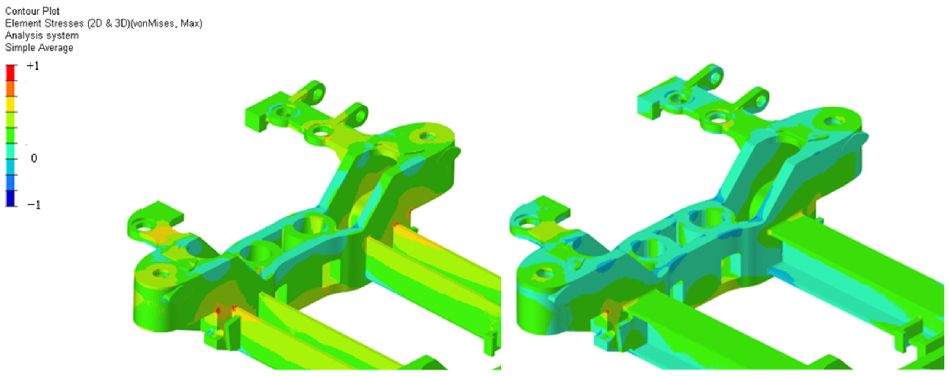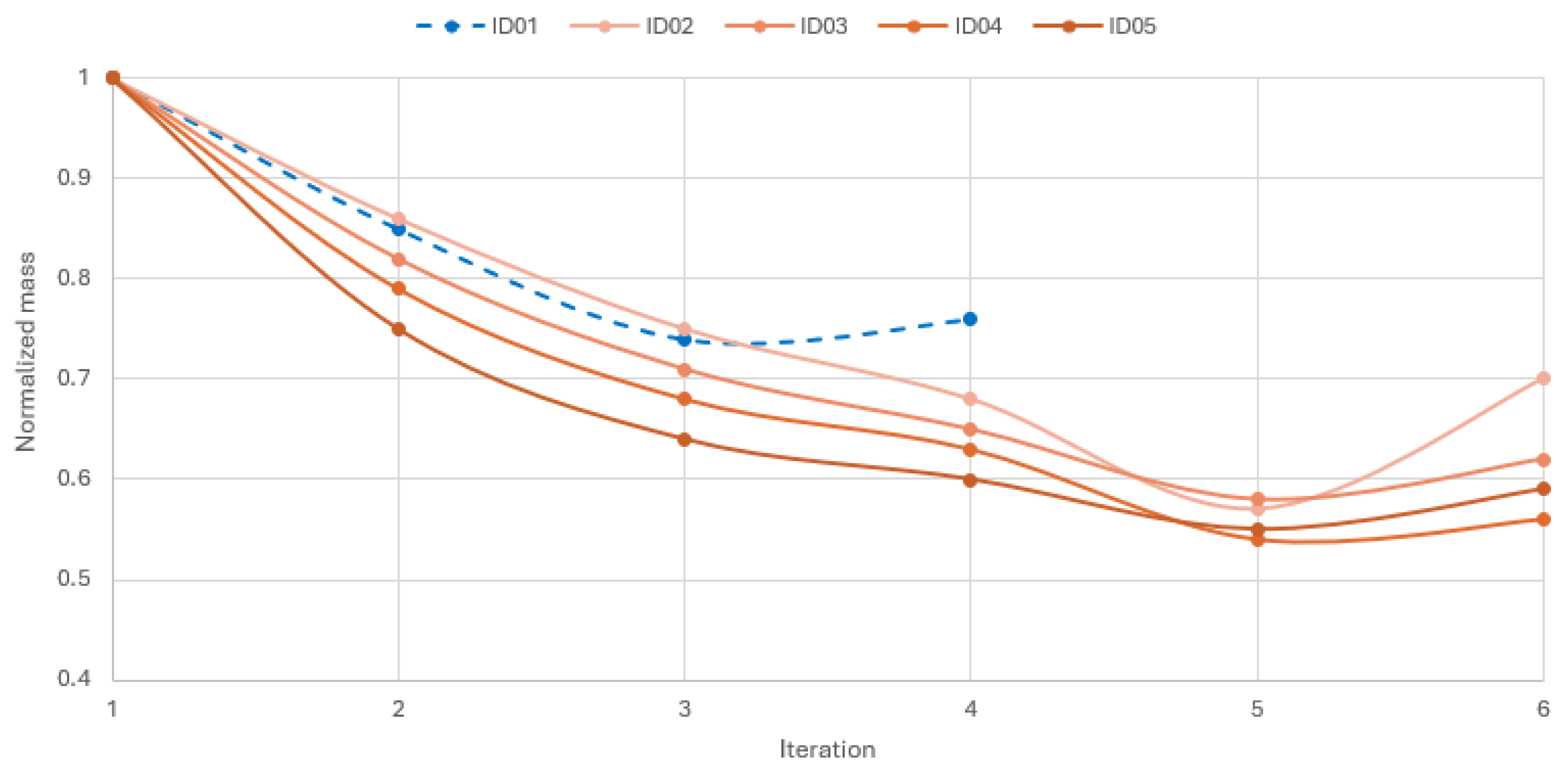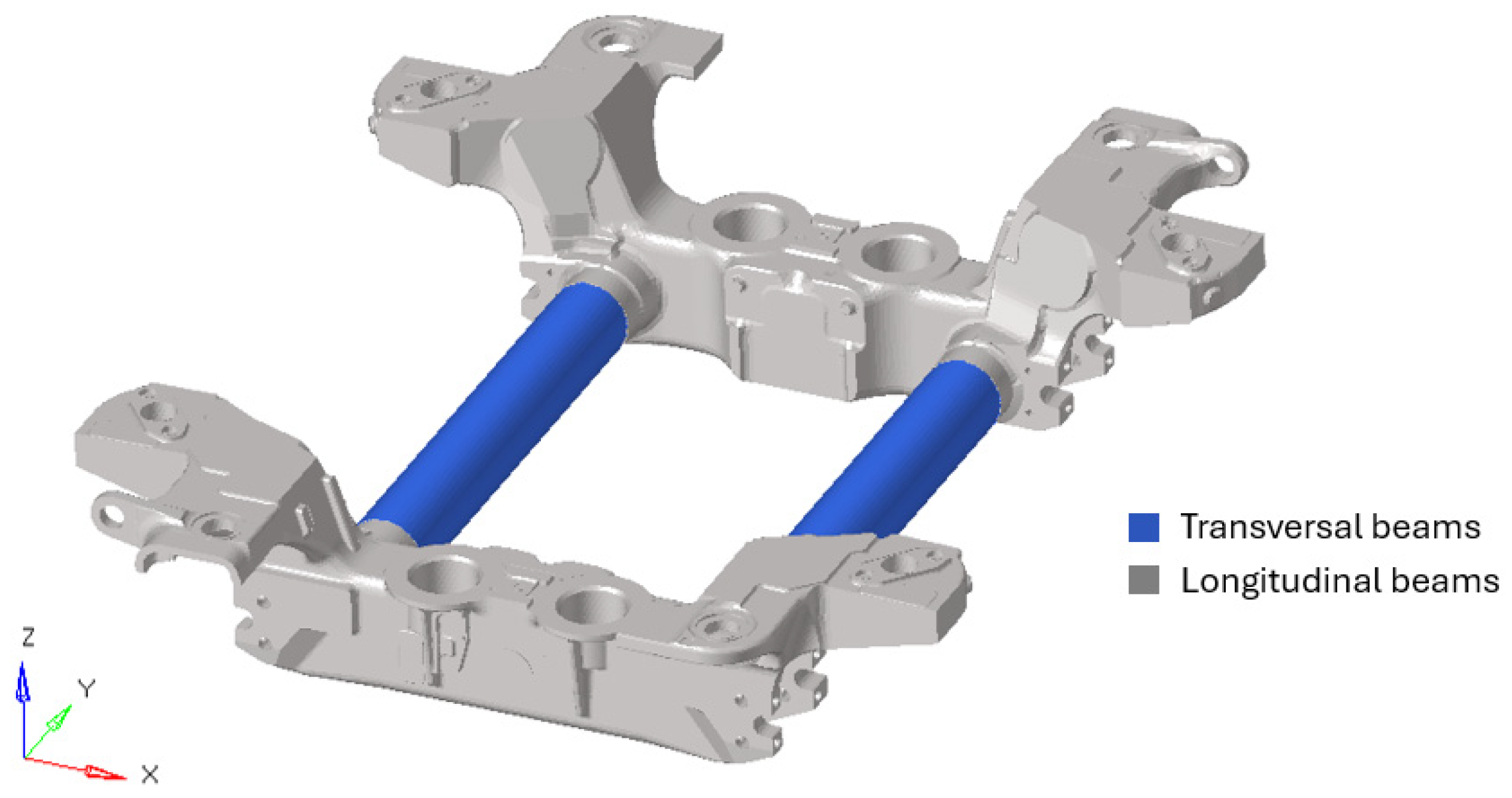 - A second optimization cycle was then performed, this time targeting the redesign of the transversal beams, with the dual aim of improving both their mechanical performance and their geometric characteristics from a design-for-manufacturing perspective;