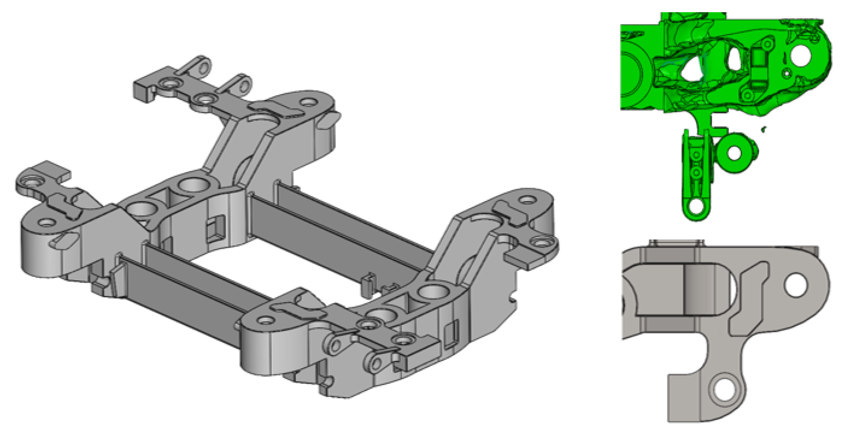 - An intermediate performance assessment of the newly generated bogie-frame geometry was executed according to the reference European standard, allowing the early identification of potential critical issues;