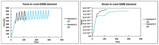 Force as a function of elongation in different GMB elements for Scenario 5 (2).