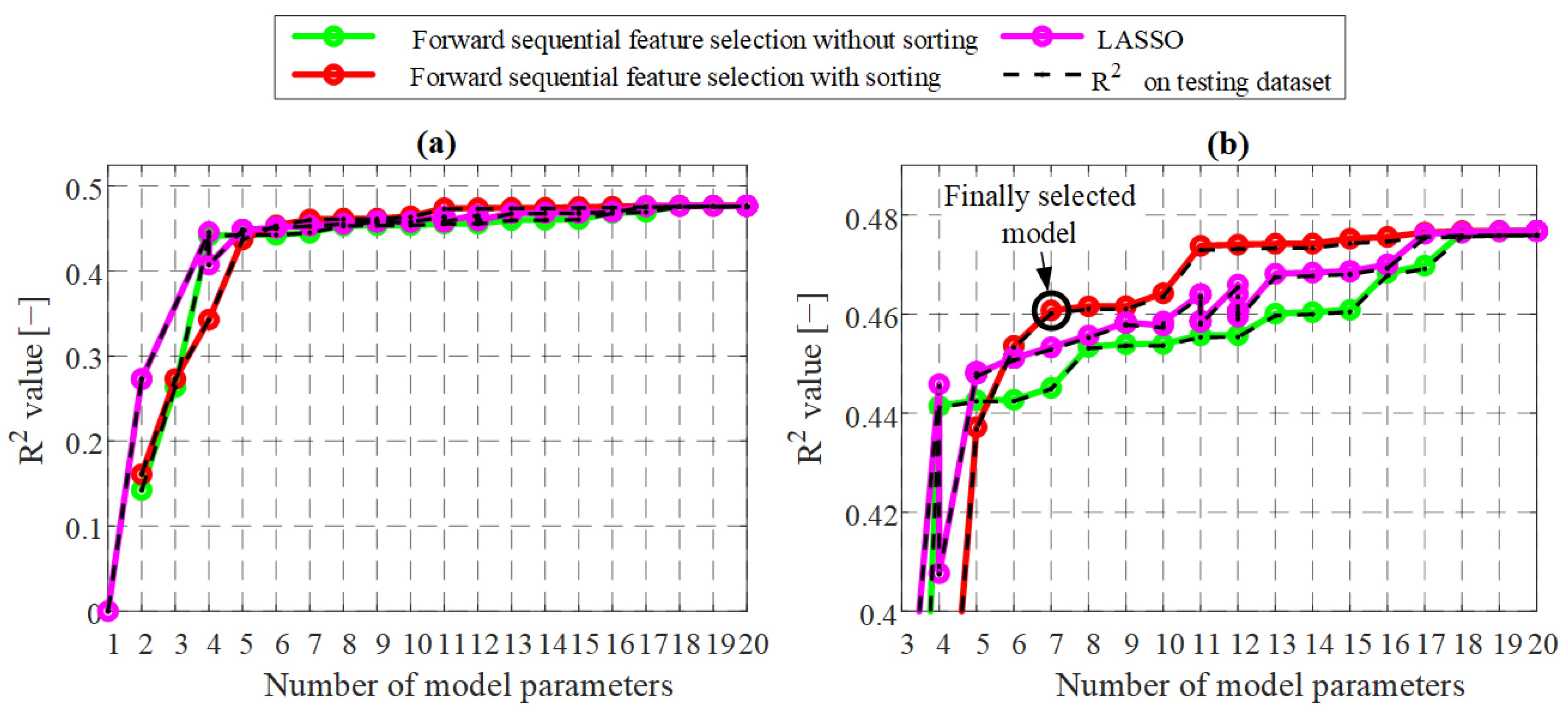 | Model | Number of Model Features | RMSE [−] | R2 [−] | RMSE [−] | R2 [−] |