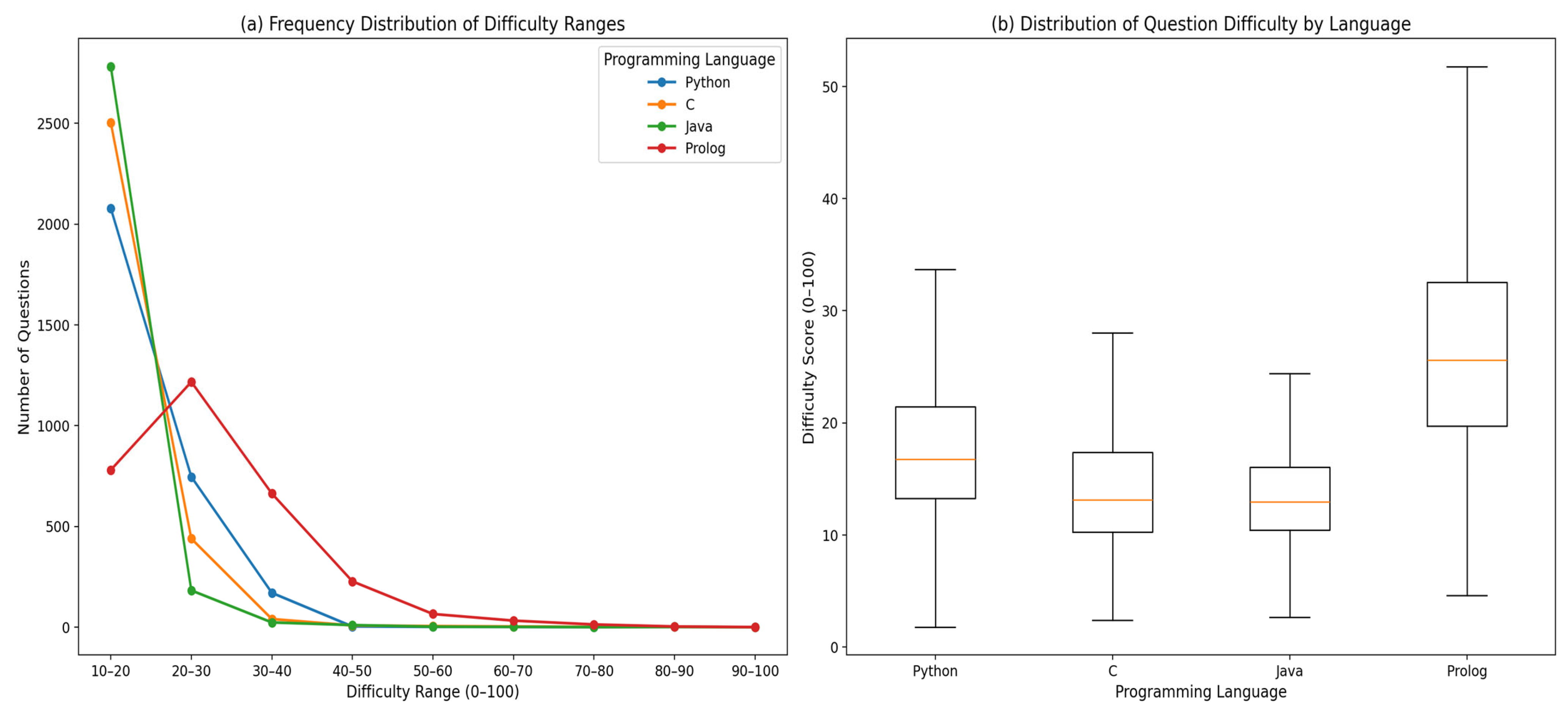 To validate the reliability of the automatic labeling scheme, 100 questions were randomly sampled for each programming language (C, Java, Python, and Prolog) and manually reviewed. Across all four languages, the automatic labels were fully consistent with the corresponding human annotations, with no discrepancies observed.