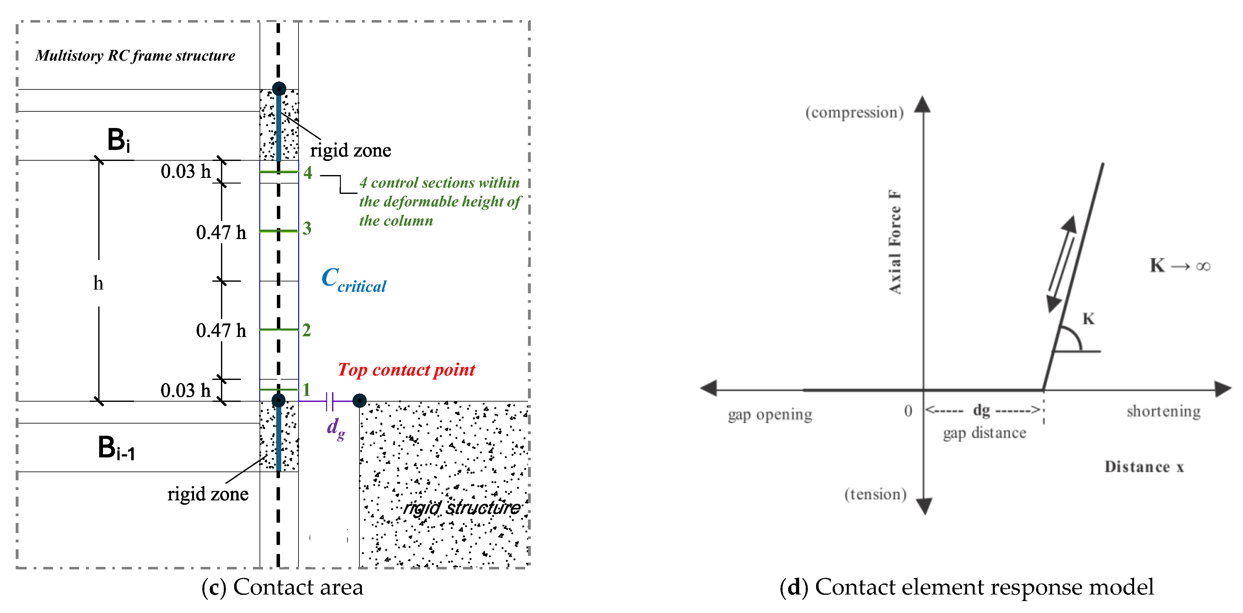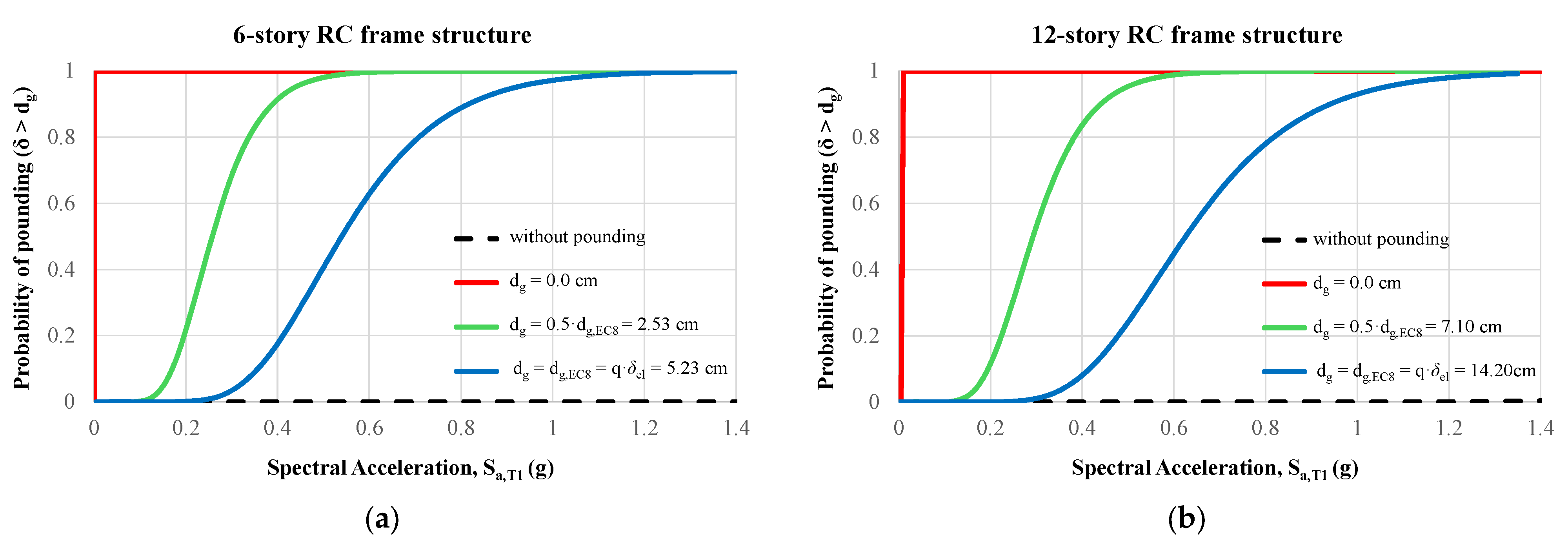 - Flenga, M.G.; Favvata, M.J. Probabilistic seismic assessment of the pounding risk based on the local demands of a multistory RC frame structure. Eng. Struct. 2021, 245, 112789. [Google Scholar] [CrossRef]