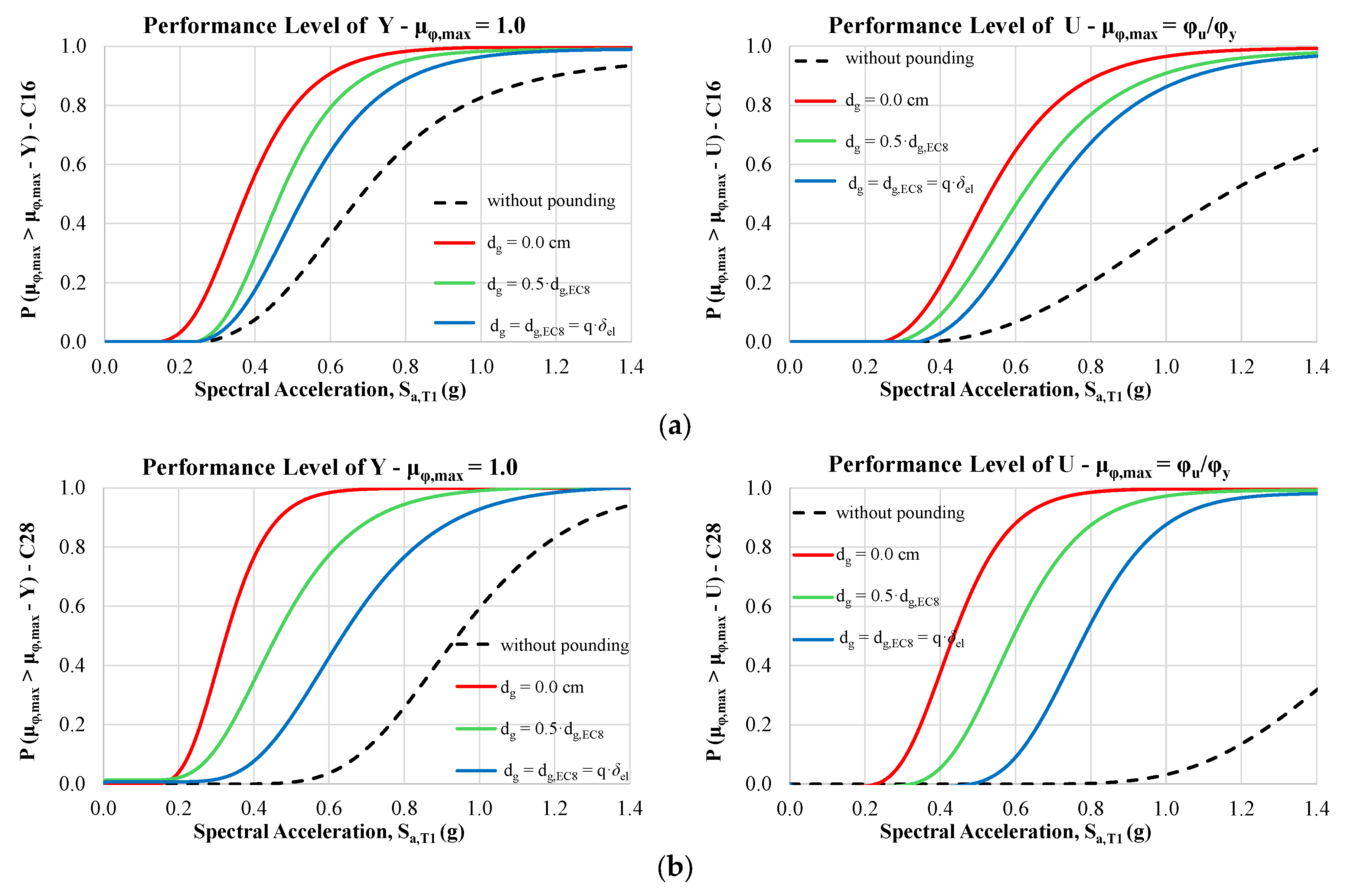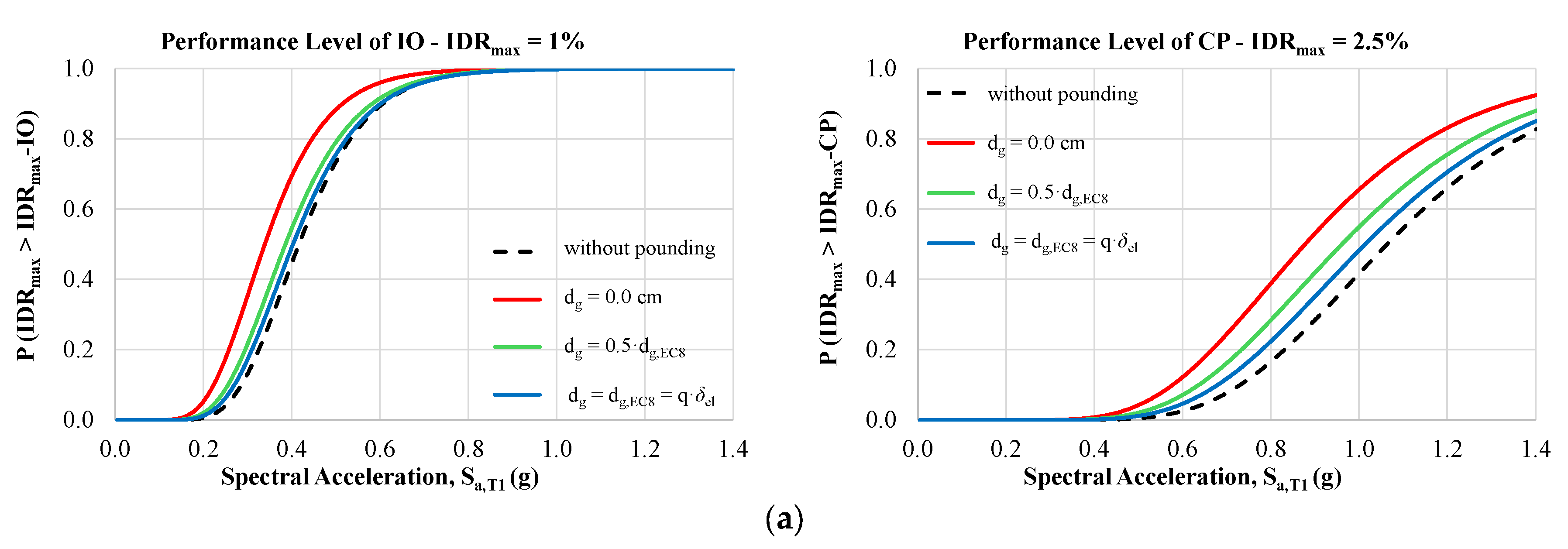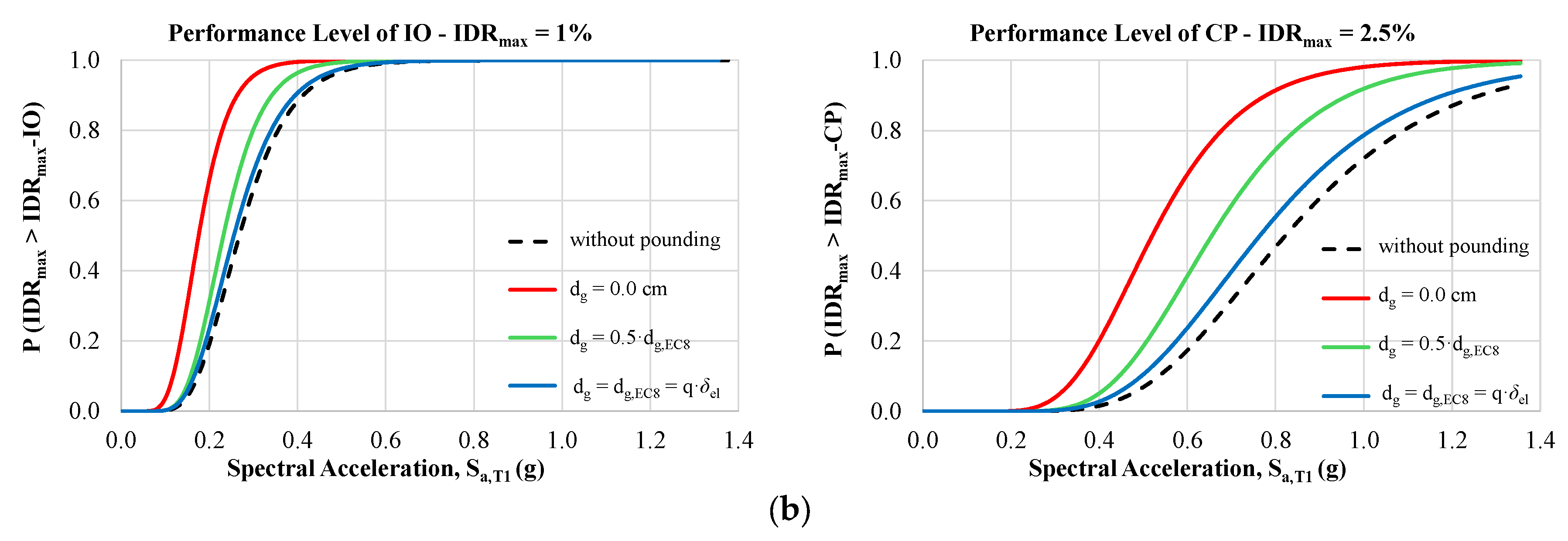 - Flenga, M.G.; Favvata, M.J. Fragility curves and probabilistic seismic demand models on the seismic assessment of RC frames subjected to structural pounding. Appl. Sci. 2021, 11, 8253. [Google Scholar] [CrossRef]