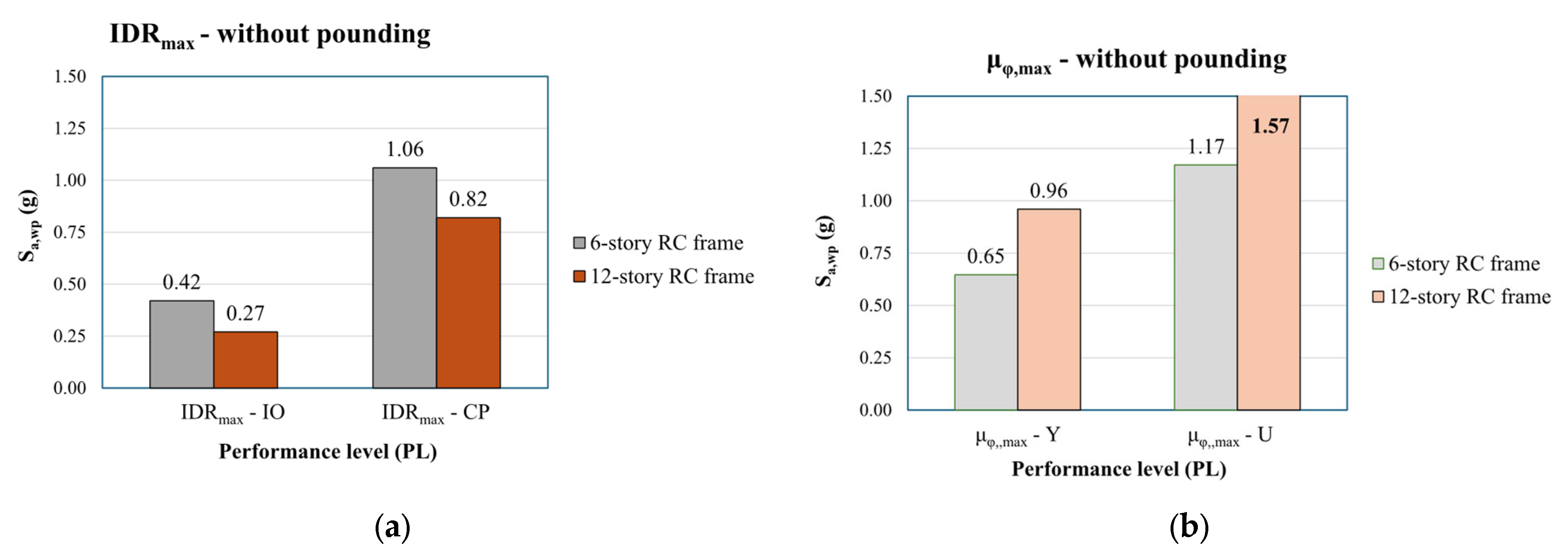 - An increase in stories from 6 to 12 decreases the ratio of . Therefore, the most critical pounding cases are posed on the twelve-story RC frames.