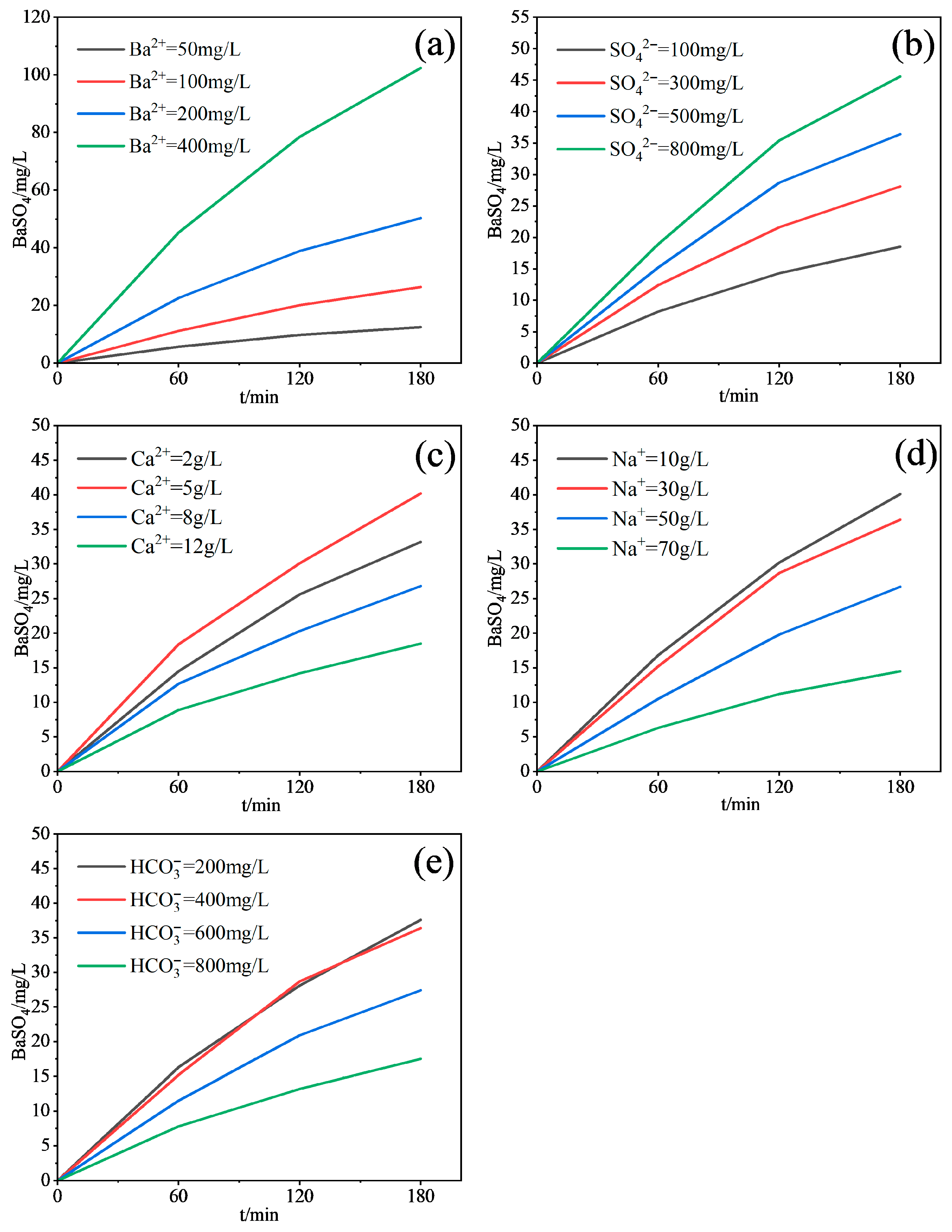 | 1 | Ba2+ | 50, 100, 200, 400 | SO42− = 500, Na+ = 30,000, Ca2+ = 5000, HCO3− = 400 |