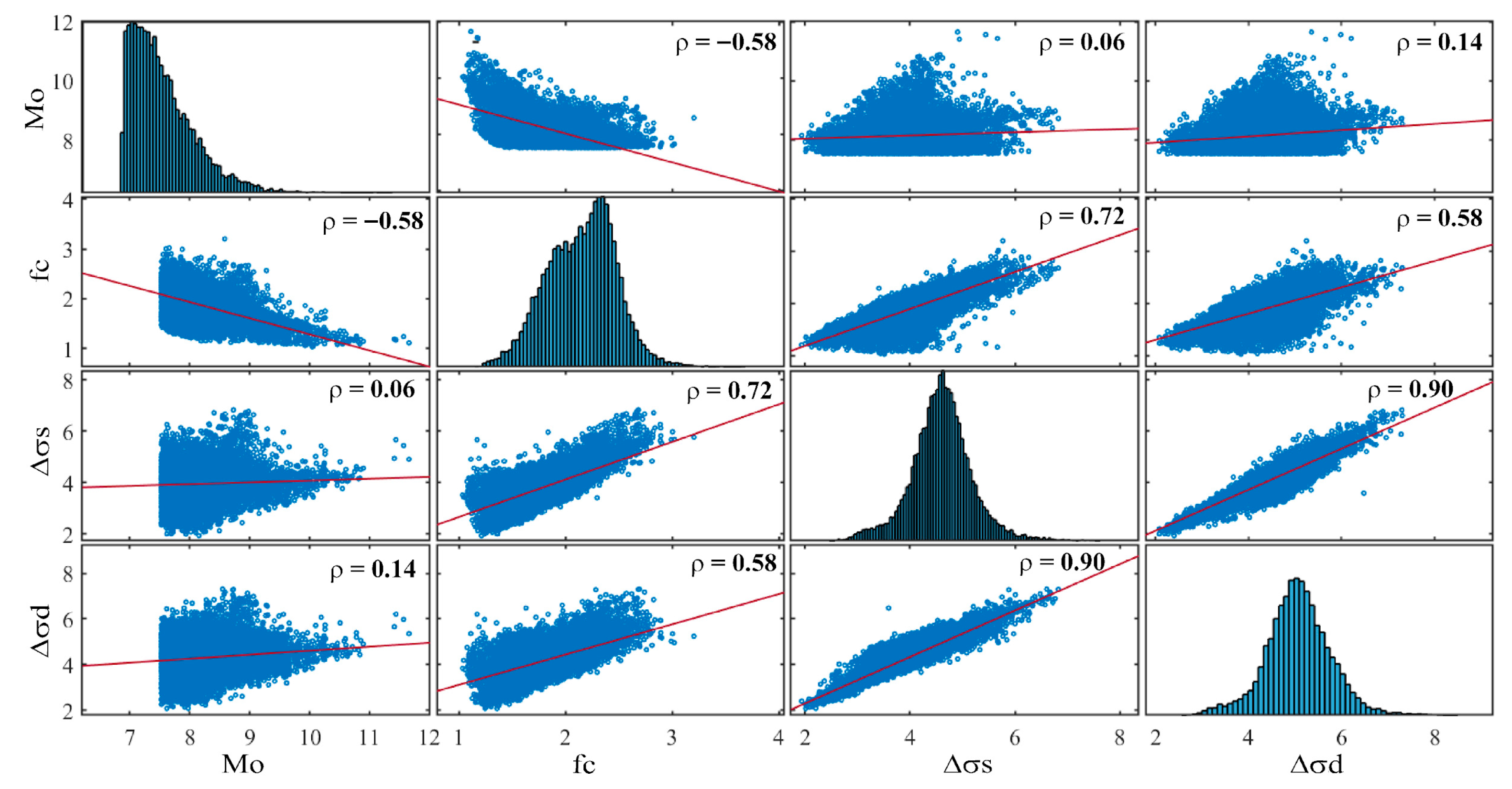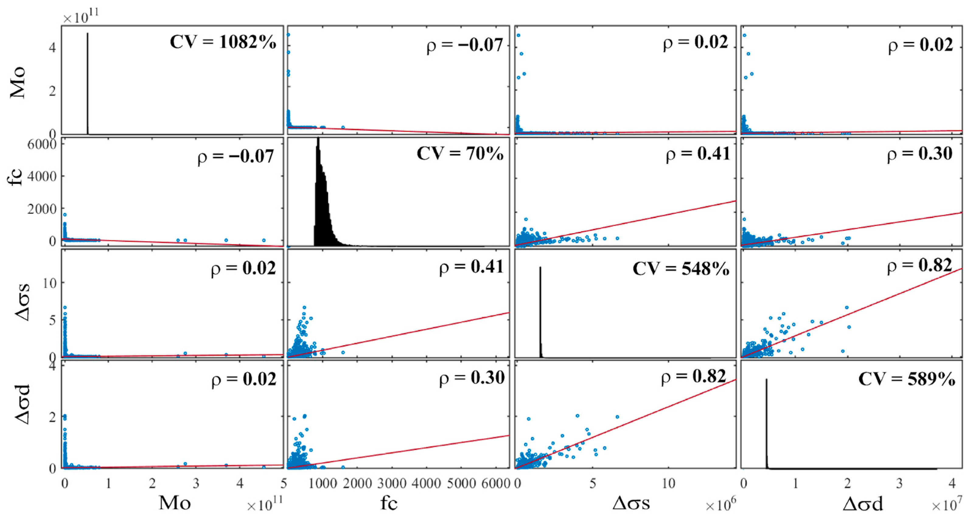 | Dynamic stress drop (Δσd) | 82.4 | 3.0 × 107 | 6.1 × 104 | 3.7 × 105 | Pa |