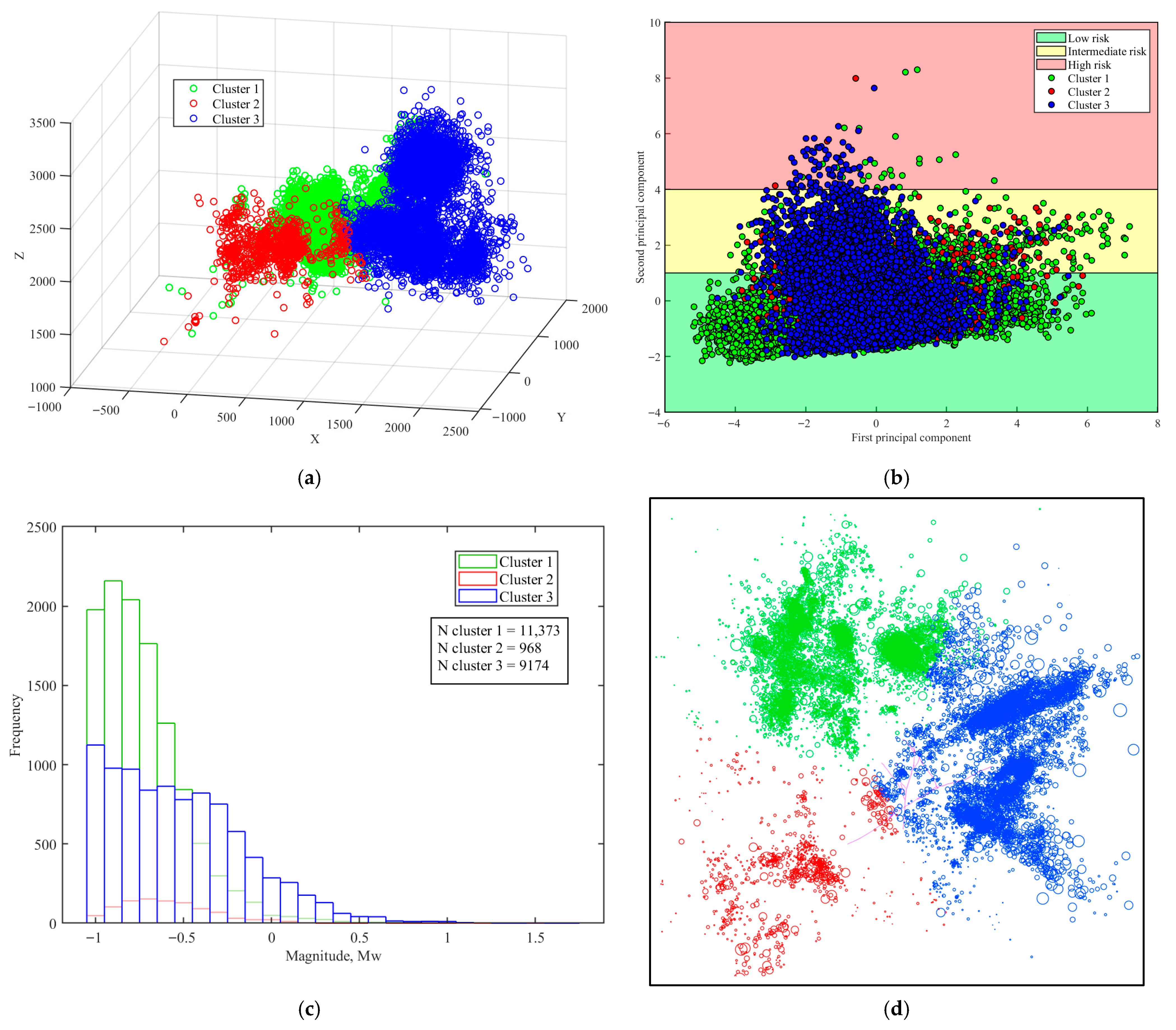 - Ansari, A.; Noorzad, A.; Zafarani, H. Clustering analysis of the seismic catalog of Iran. Comput. Geosci. 2009, 35, 475–486. [Google Scholar] [CrossRef]