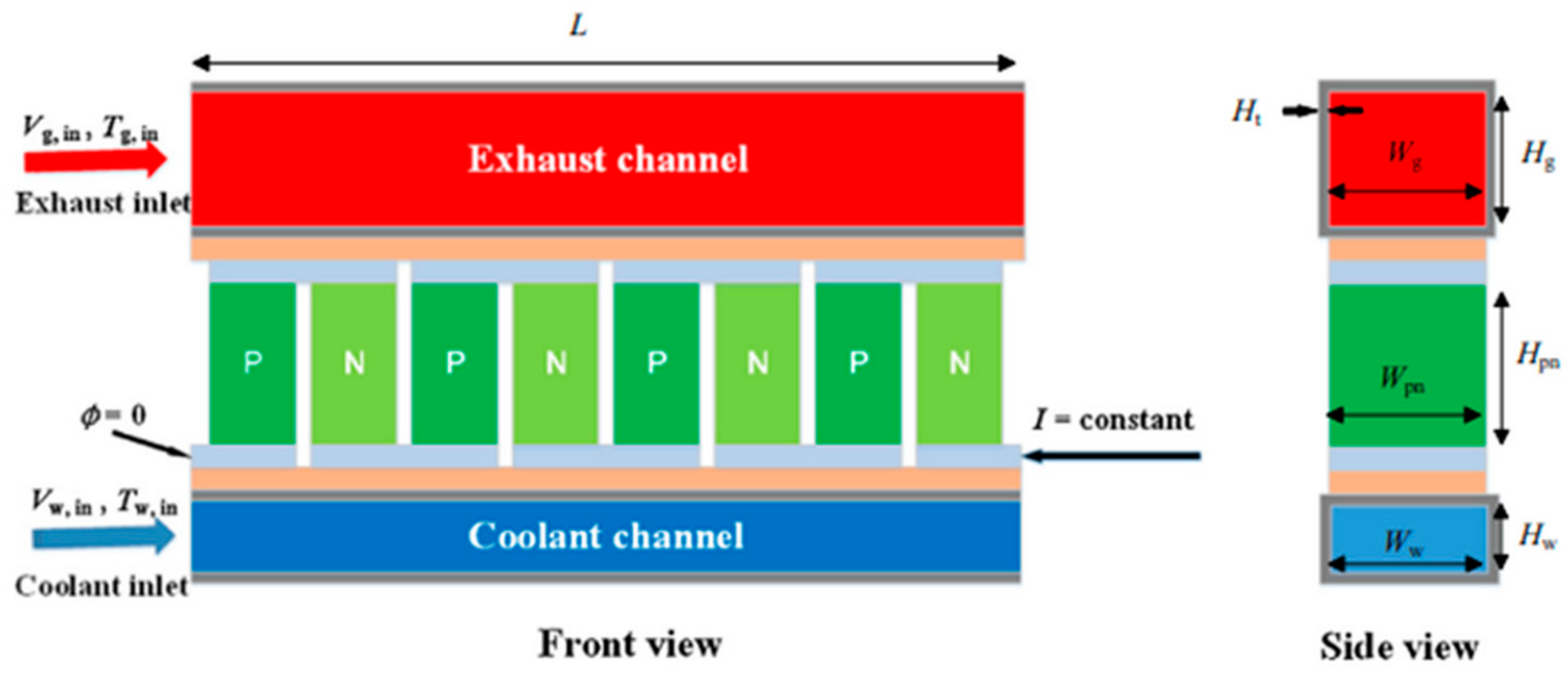Saqr et al. in their study examine the thermal design of exhaust-based thermoelectric generators (ETEGs) used to recover waste heat in automobiles. The authors state that the main challenge in the literature is to increase the efficiency of the heat exchanger while maintaining a large temperature difference across the thermoelectric modules. According to the study, the thermal efficiency of any ETEG system is mainly controlled by four factors: the geometry of the heat exchanger, the materials of the heat exchanger, the installation site of the ETEG, and the coolant system of the ETEG [