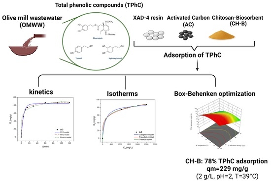 - Solomakou, N.; Goula, A.M. Treatment of Olive Mill Wastewater by Adsorption of Phenolic Compounds. Rev. Environ. Sci. Biotechnol. 2021, 20, 839–863. [Google Scholar] [CrossRef]