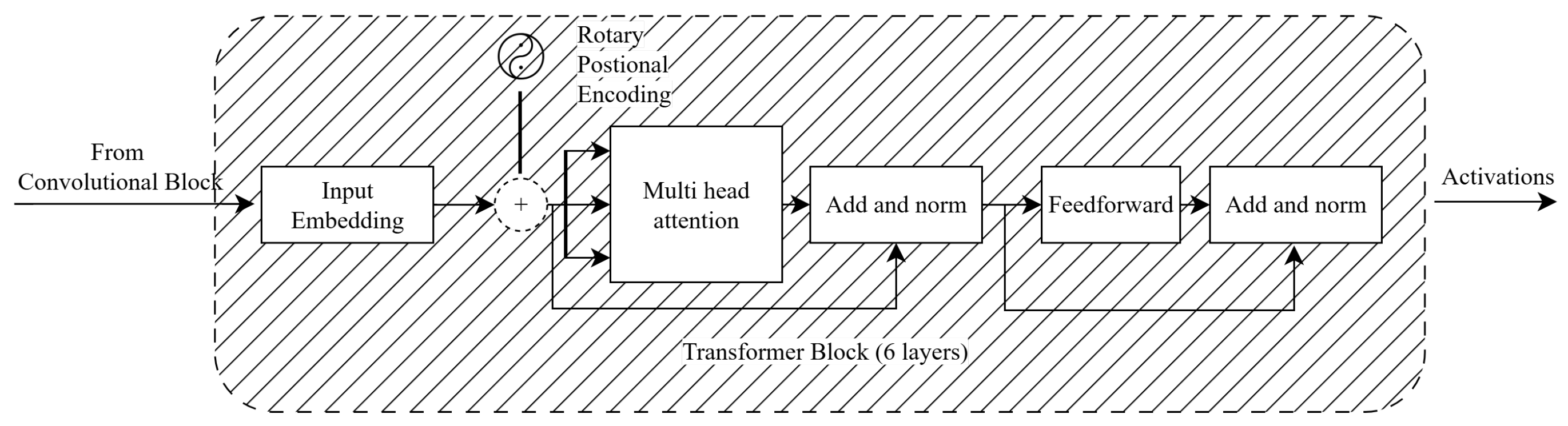 Figure 2, employs a six-layer transformer encoder with a hidden size of 64 and four attention heads. Rotary positional embeddings (RoPE) are used to encode temporal relationships in a way that accommodates varying tempi, and a feed-forward expansion factor of four increases representational capacity. As with the TCN, the online RoFormer applies causal masking, whereas the offline version operates without temporal restrictions.
