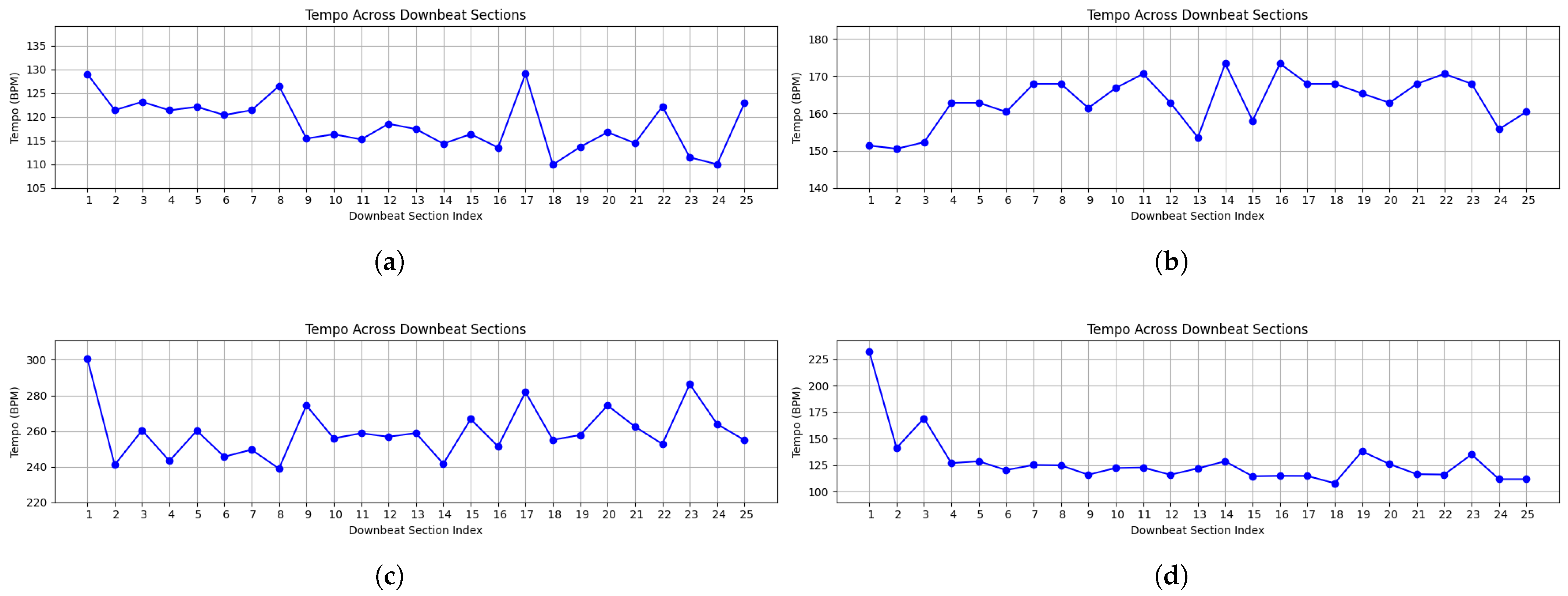 4.3. Tempo Variation Across Downbeat Sections