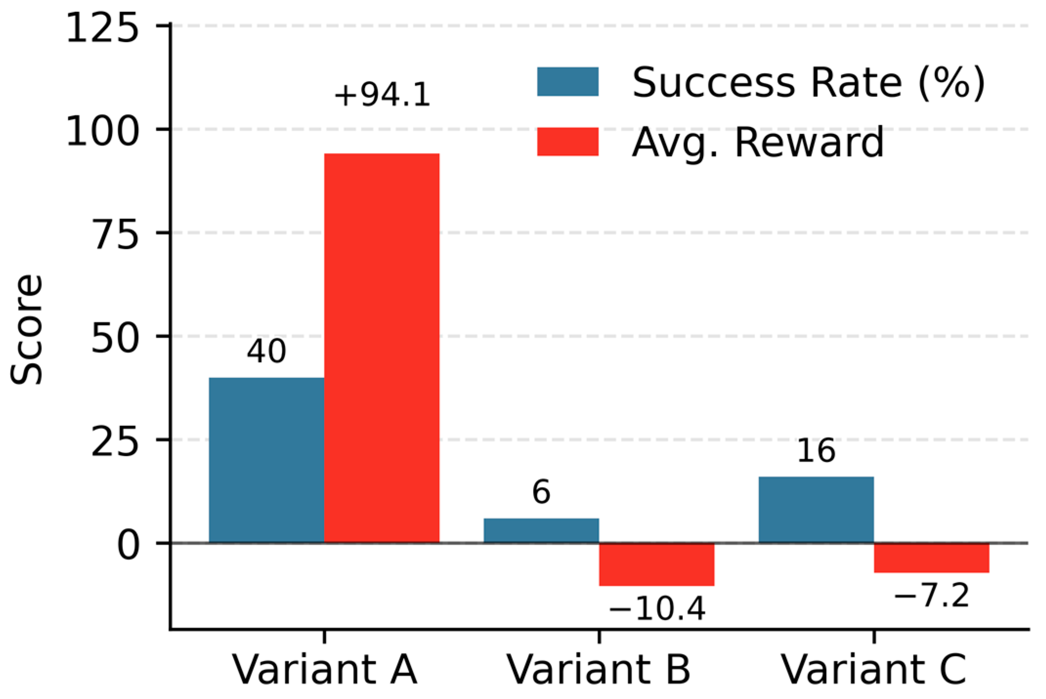Table 5 quantifies the final performance metrics for the fusion strategies: Variant A (Early Fusion), Variant B (Parallel Fusion), and Variant C (Late Fusion). Early Fusion (Variant A) is numerically confirmed as superior, achieving 40.0% ± 4.2% success and a +94.1 ± 15.8 average reward. Parallel Fusion (Variant B) yielded the lowest performance, with 6.0% ± 1.5% success and a −10.4 ± 4.8 reward. Late Fusion (Variant C) achieved an intermediate but poor result of 16.0% ± 2.8% success and a −7.2 ± 3.1 reward. The table confirms the consistent underperformance of both parallel and late designs relative to the early fusion strategy.