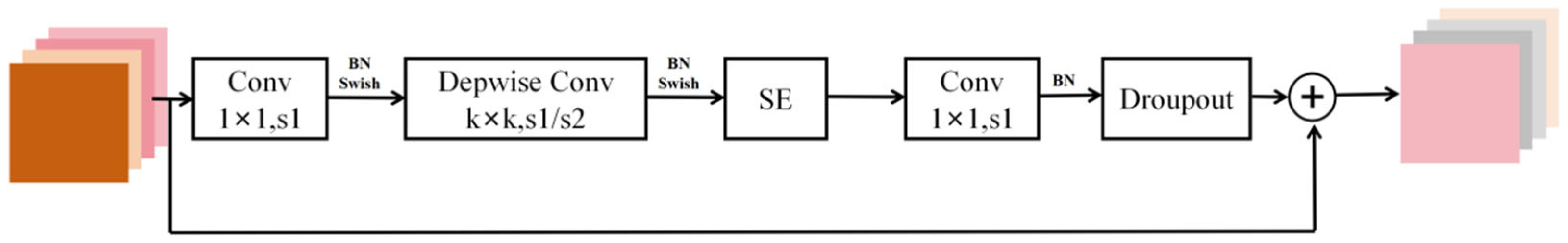 ), the MBConv module incorporates a residual connection, allowing the input features to be directly added to the output features. This facilitates feature reuse and enables efficient gradient propagation throughout the network.