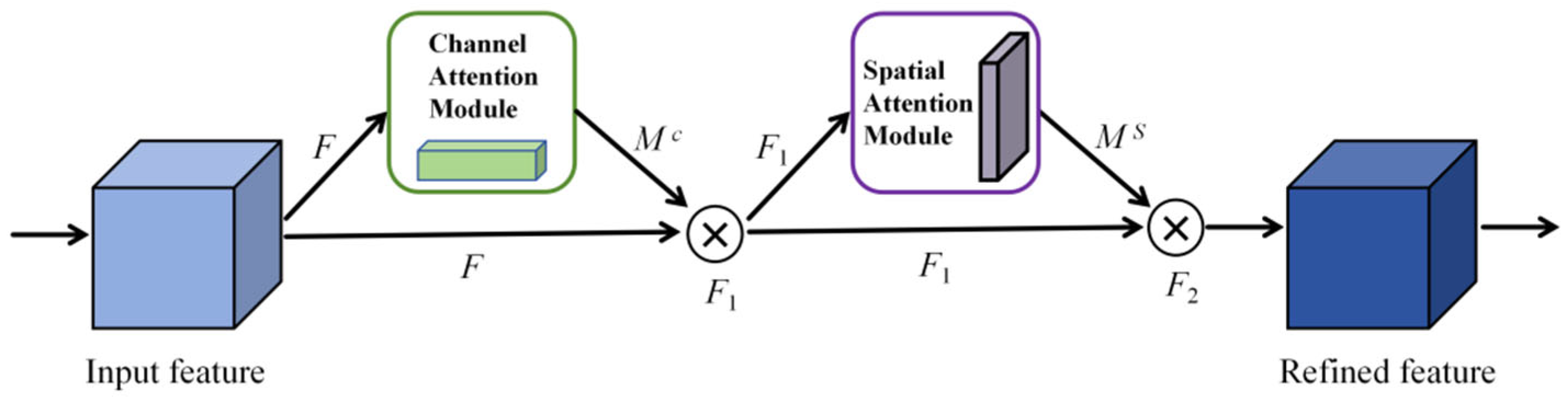 The Convolutional Block Attention Module (CBAM) is a lightweight and plug-and-play attention mechanism, as illustrated in