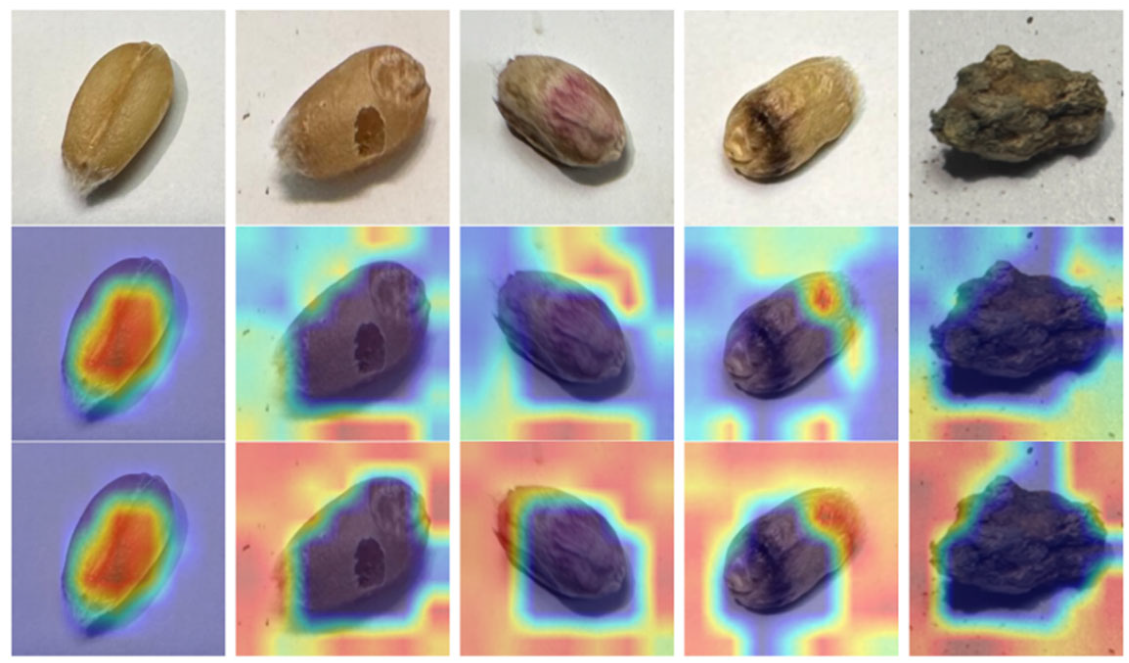 12]. This dependence limits their ability to effectively capture the subtle morphological and textural variations present in wheat kernels, thereby constraining recognition accuracy. These approaches require domain expertise to design and select appropriate features; however, the characteristics of wheat kernels affected by developmental defects or damage often exhibit pronounced heterogeneity. As a result, manually engineered features struggle to adequately represent such complex variations [