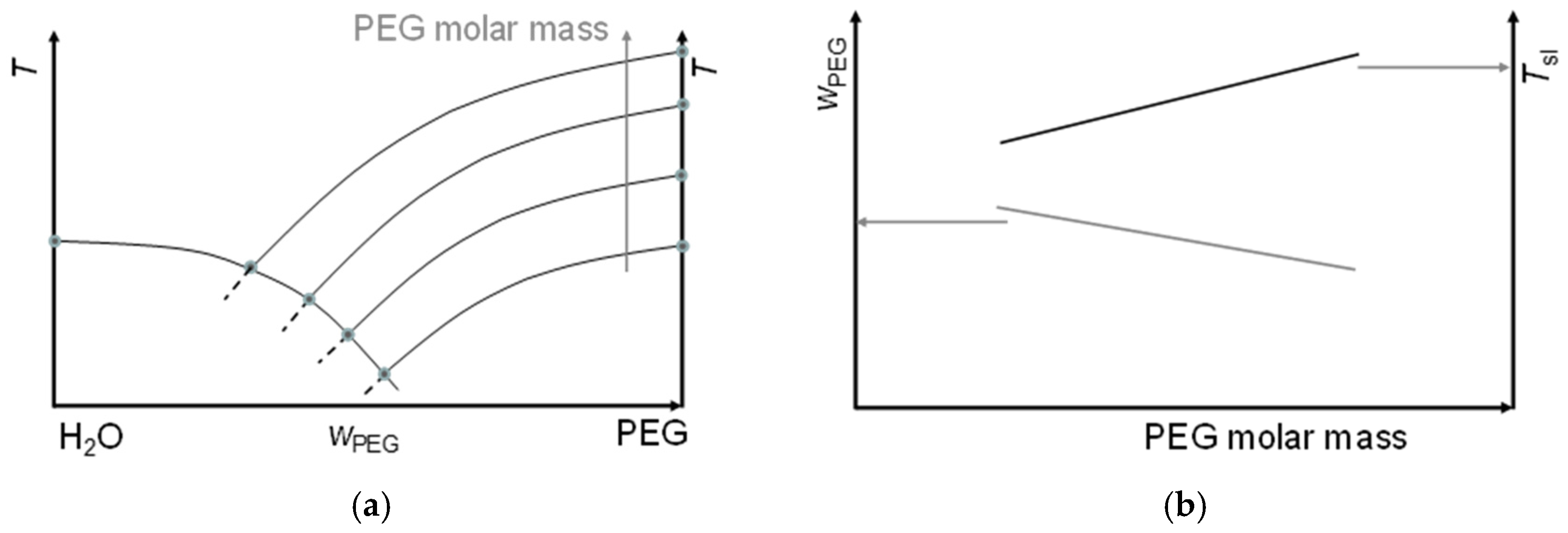 - Huang, L.; Nishinari, K. Interaction Between Poly(ethylene glycol) and Water as Studied by Differential Scanning Calorimetry. J. Polym. Sci. Part B Polym. Phys. 2001, 39, 496–506. [Google Scholar] [CrossRef]