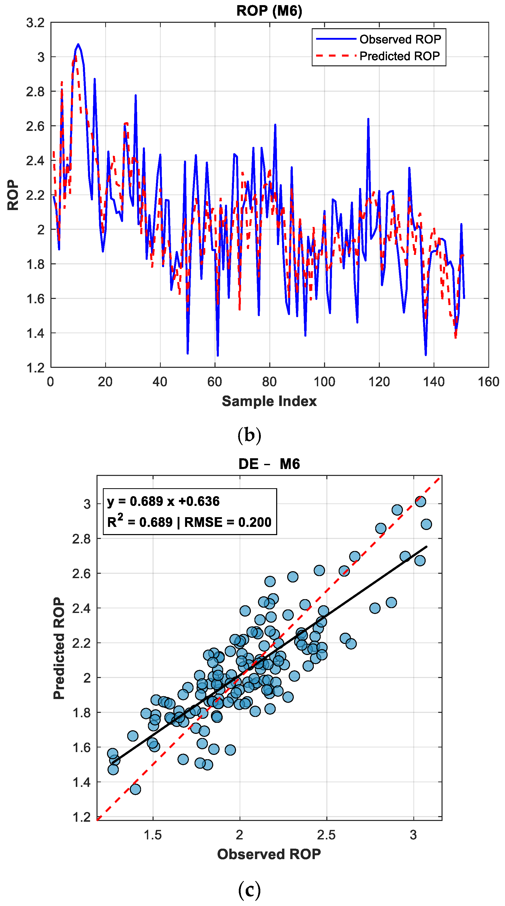 Overall, the results demonstrate that the proposed M6 parametric model, optimized using Differential Evolution and supported by Jacobian-based elasticity analysis, achieves the most balanced performance among all evaluated approaches. While machine learning models such as GAM and SVM effectively capture nonlinear interactions, the M6 model offers superior interpretability, physical consistency, and competitive predictive accuracy. The hybrid evaluation framework adopted in this study therefore provides a robust and practically applicable methodology for reliable TBM penetration rate prediction under complex geological conditions.