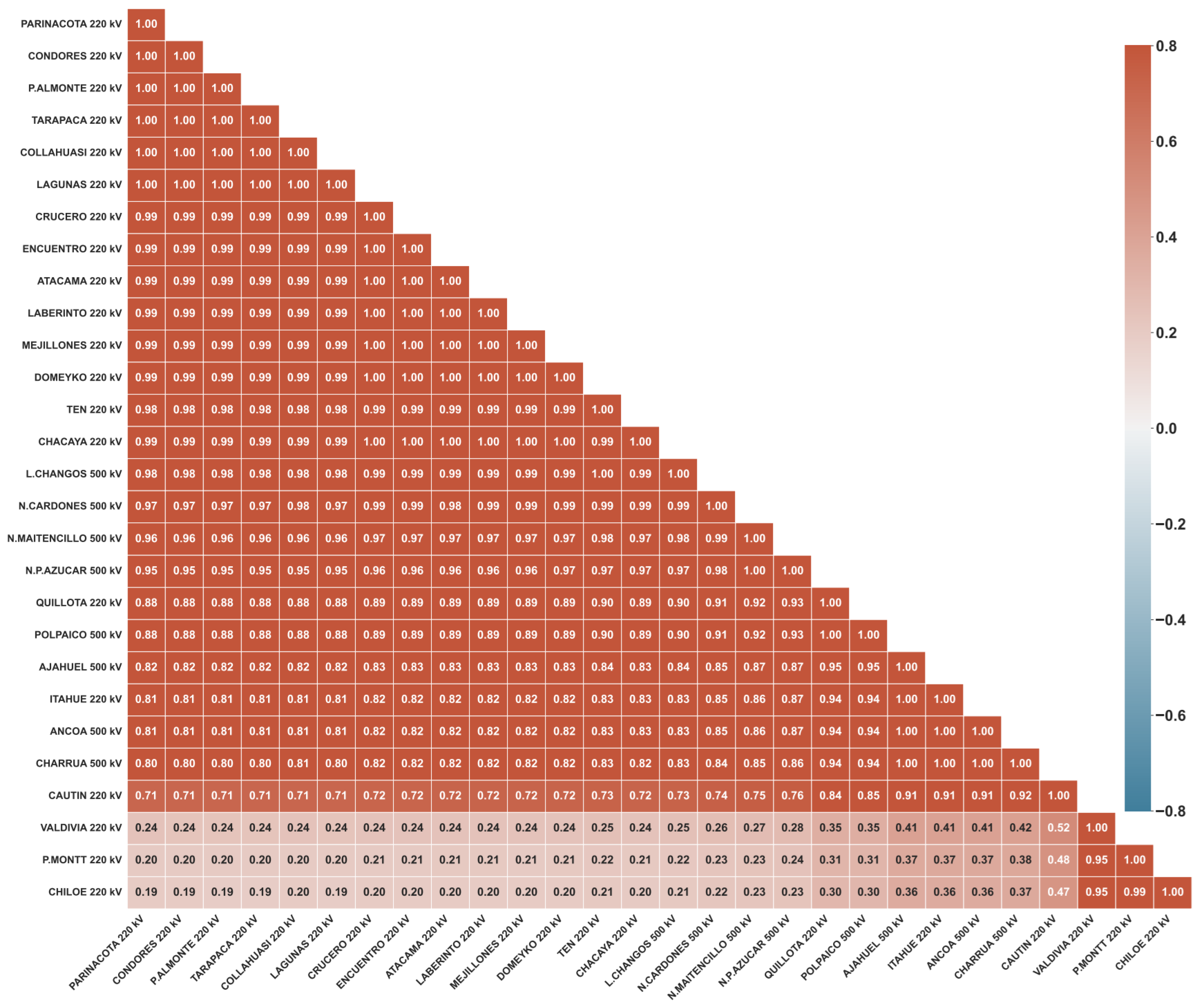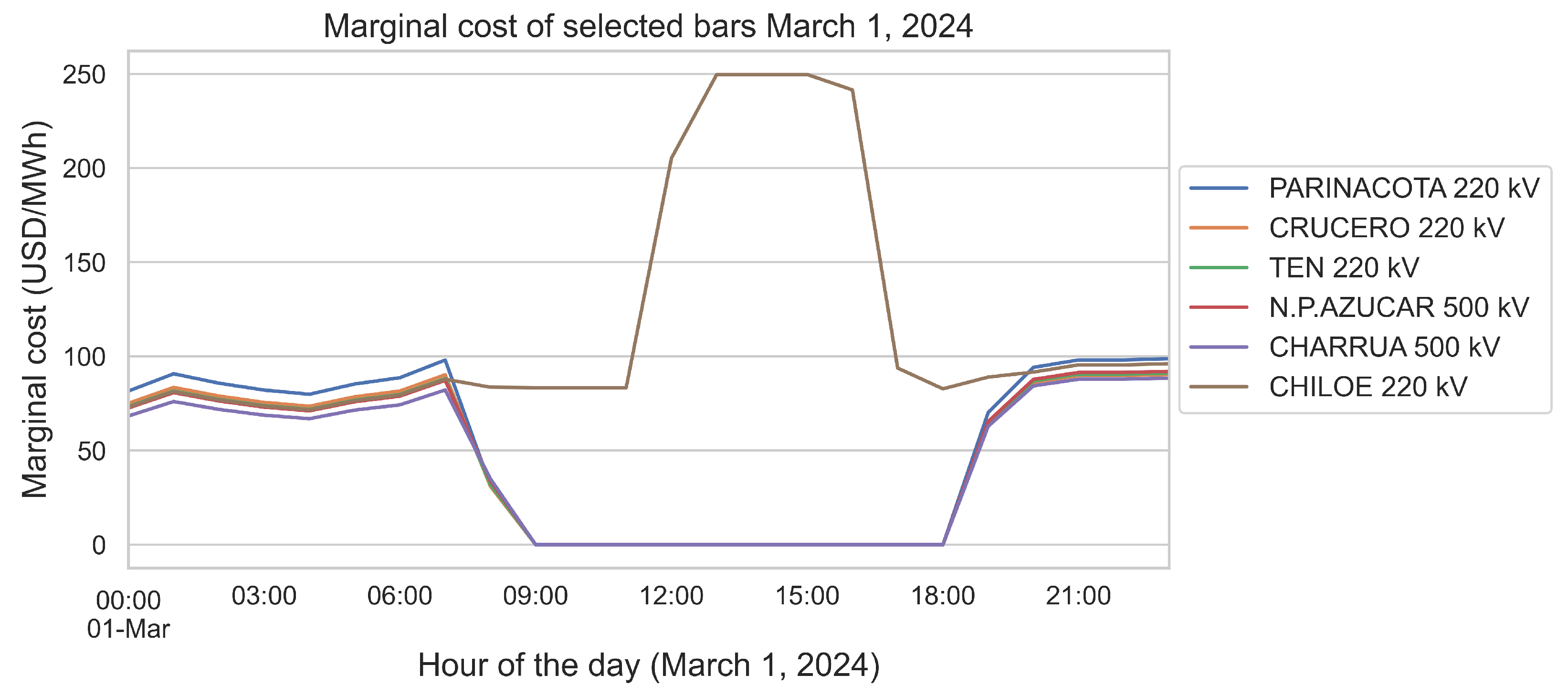 - System Marginal Price (SMP) at multiple nodes (USD/MWh).