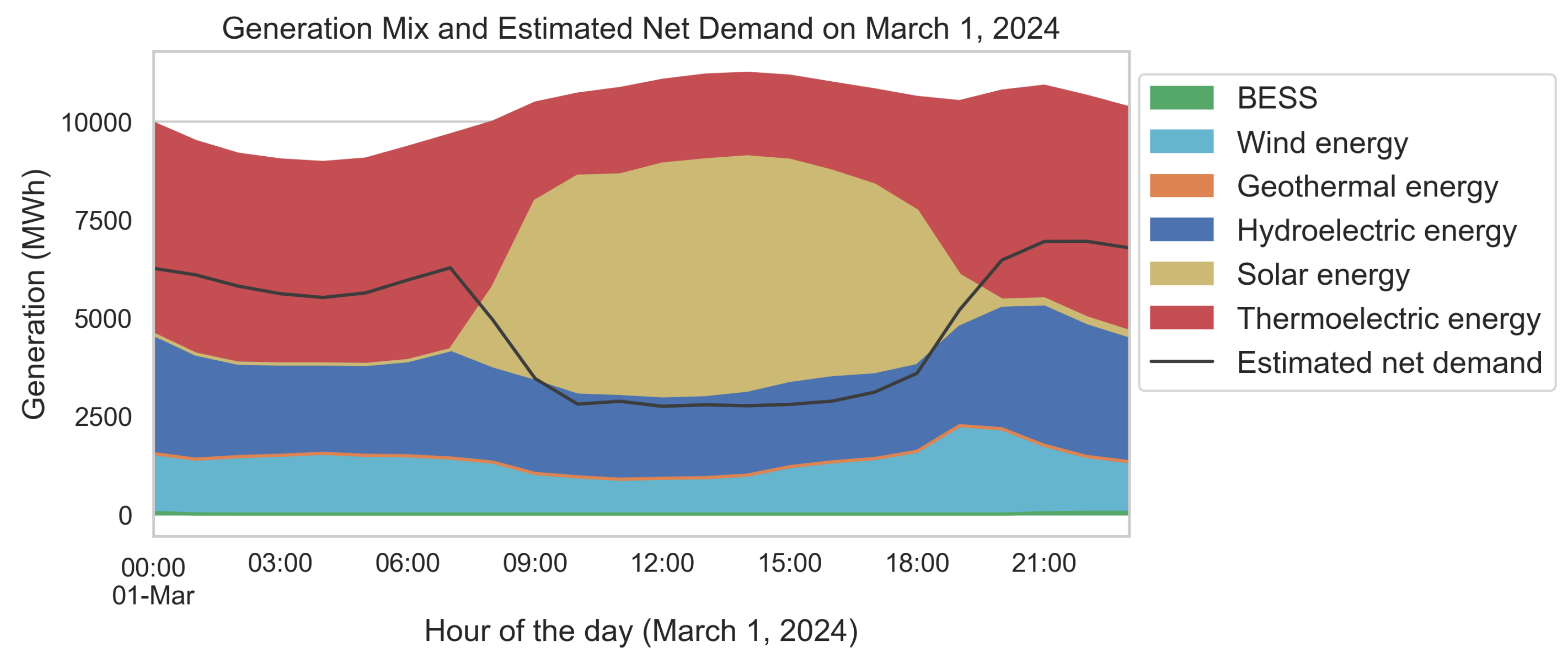 - Generation Dispatch by Technology Type (MW), categorized by energy source (e.g., hydroelectric, wind, solar, coal, natural gas), as reported by the NEC.