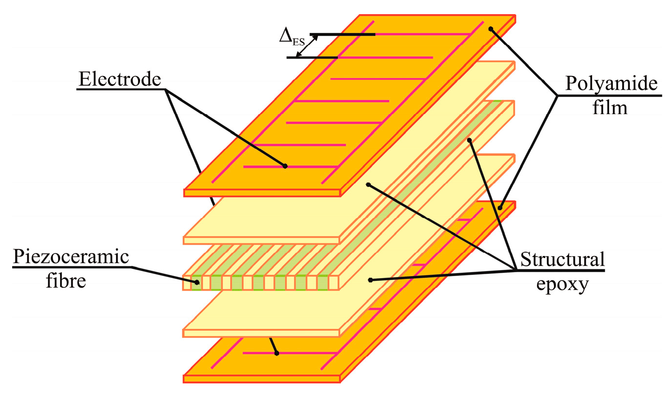 - Bent, A.A.; Hagood, N.W. Piezoelectric Fiber Composites with Interdigitated Electrodes. J. Intell. Mater. Syst. Struct. 1997, 8, 903–919. [Google Scholar] [CrossRef]