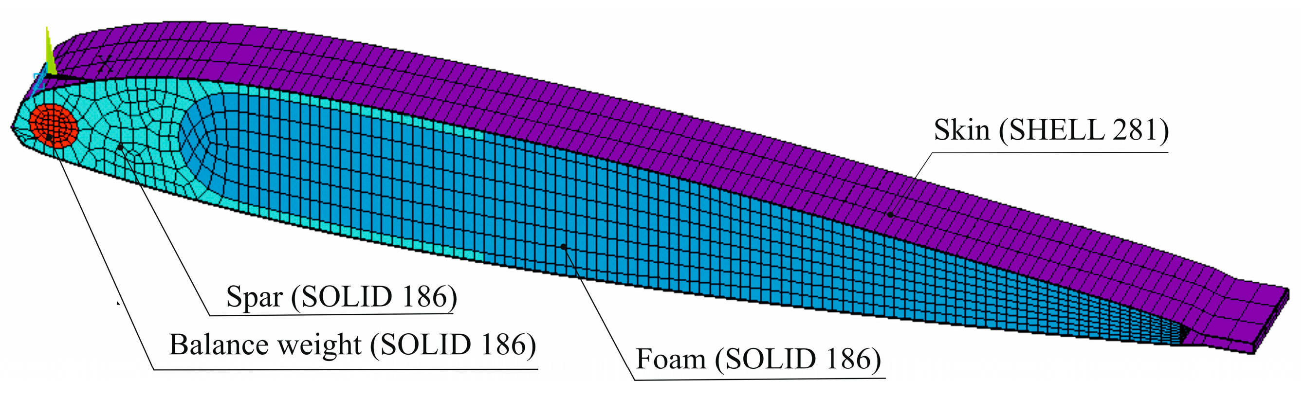 - The 3D numerical model was developed by means of the finite element software ANSYS and compared with the reference rotor model-scale blade. Most characteristics of the experimental rotor blade were in good agreement with those predicted by the numerical model. The differences from the experimental ones were no more than 6.5%, except for lag bending and torsion stiffness.