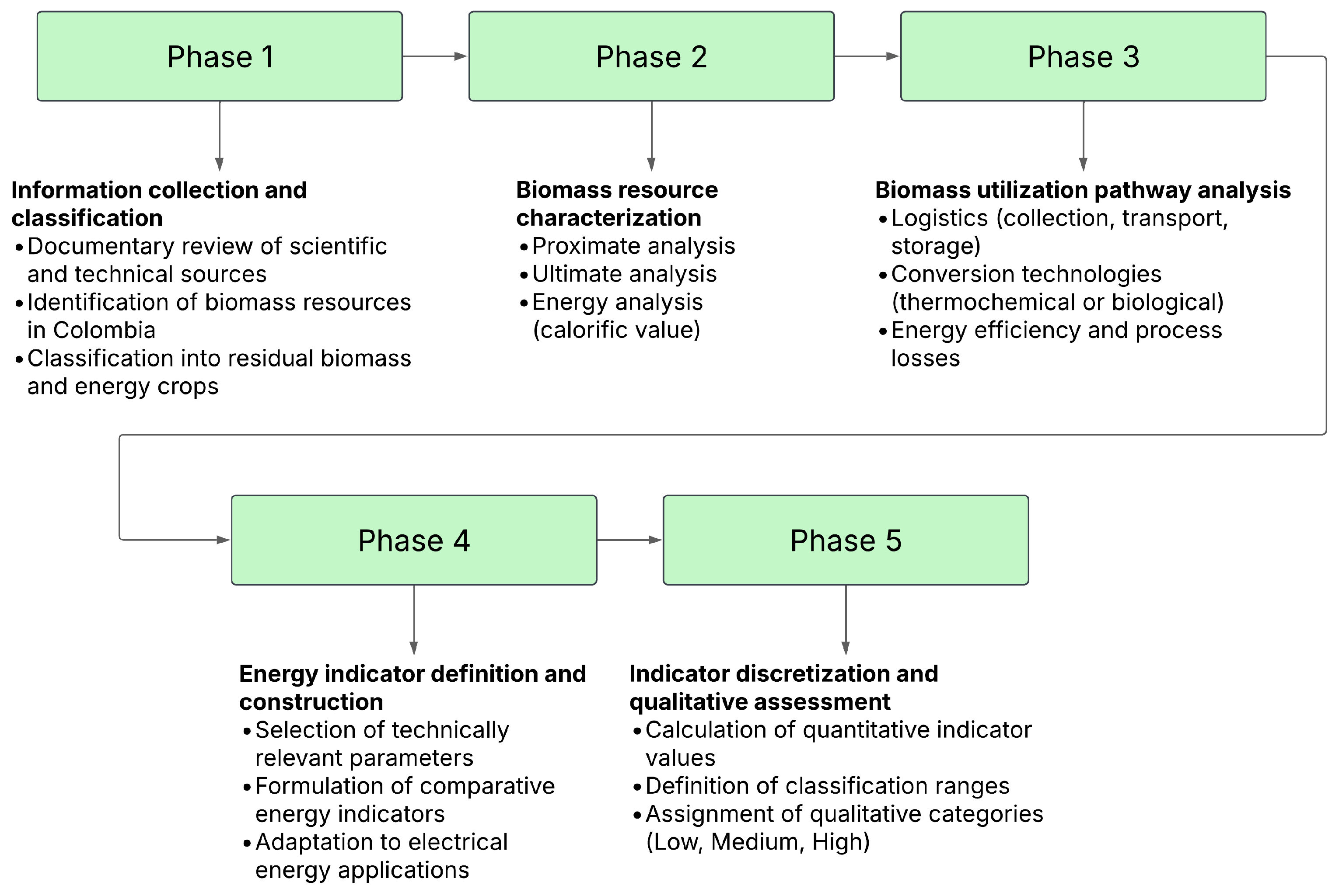 - Identifying and characterizing the main biomass resources available in Colombia, emphasizing their potential for electricity generation in microgrids.