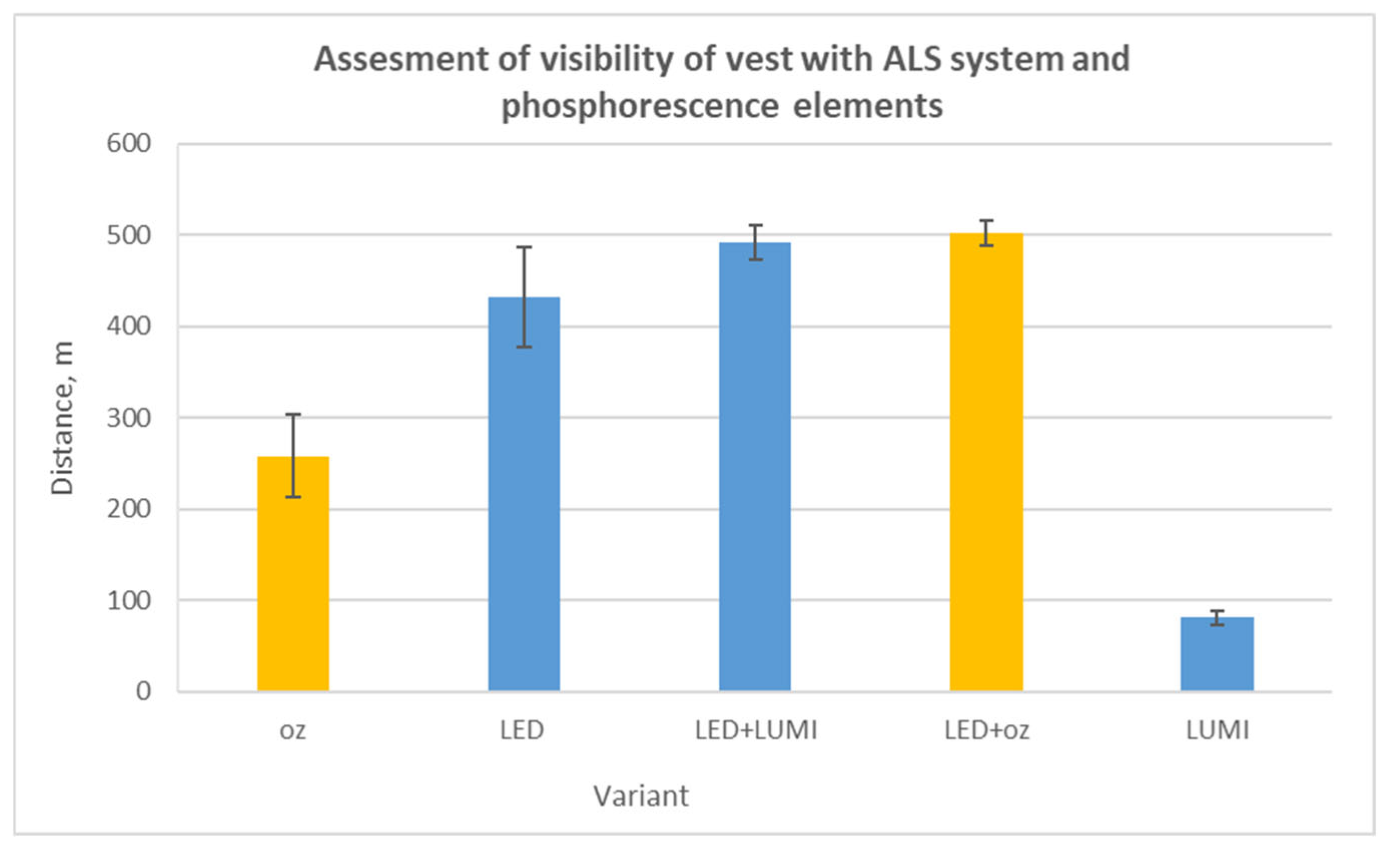 3.3. Evaluation of Visibility of Warning Clothing