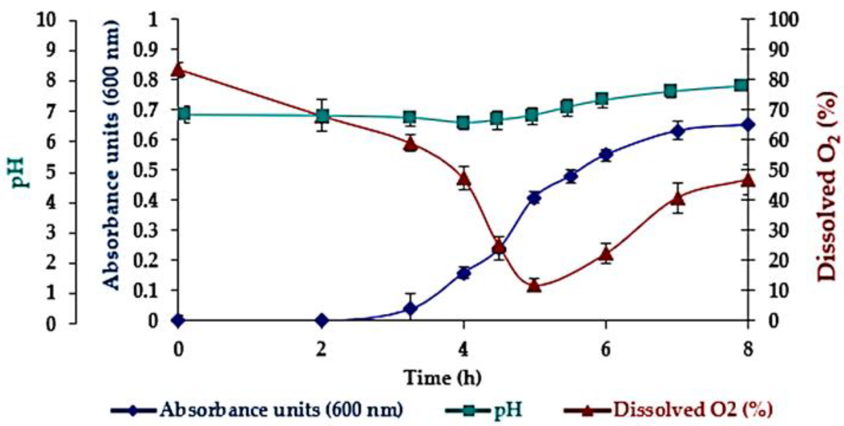 - Monod, J. The Growth of Bacterial Cultures. Annu. Rev. Microbiol. 1949, 3, 371–394. [Google Scholar] [CrossRef]