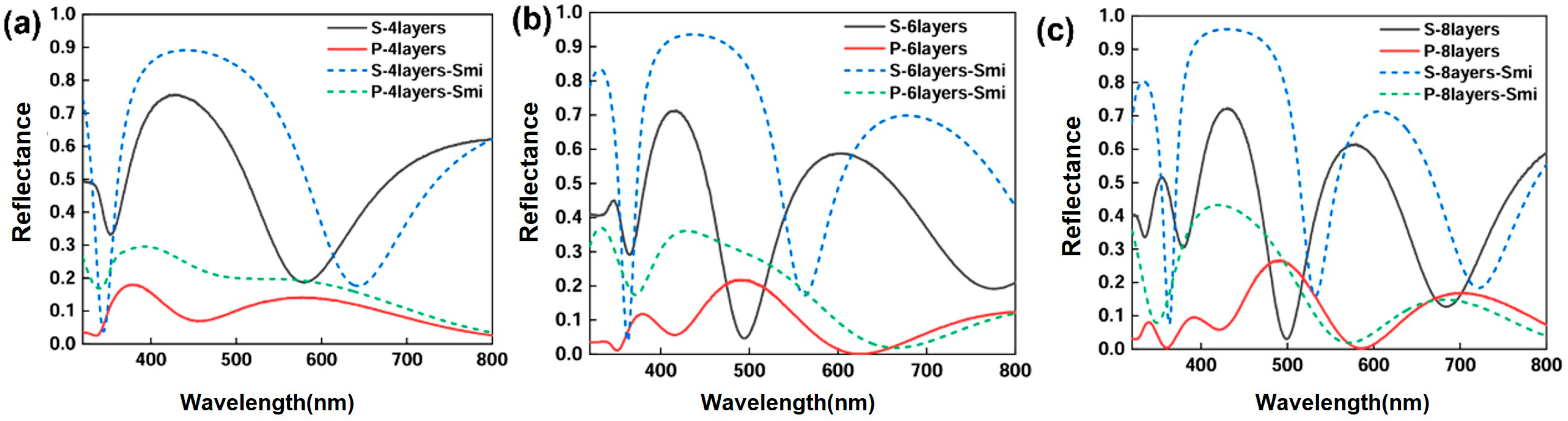 3.3.2. Effect of Layer Number on Reflectance